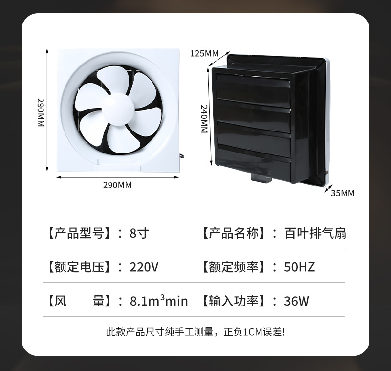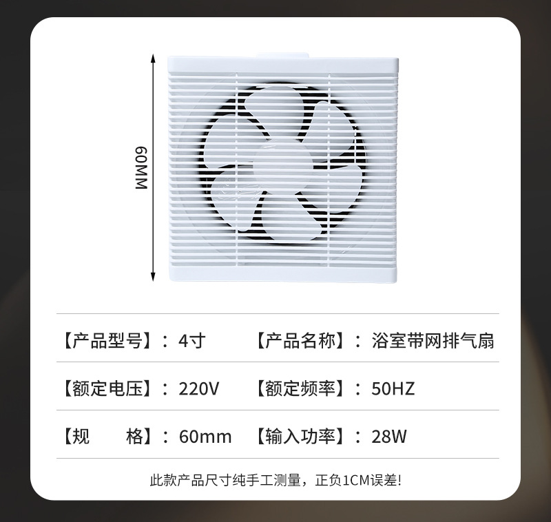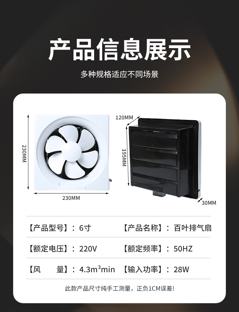 Вытяжной вентилятор с жалюзи для ванной и туалета, настенный кухонный вентилятор 4 дюйма 8 дюймов