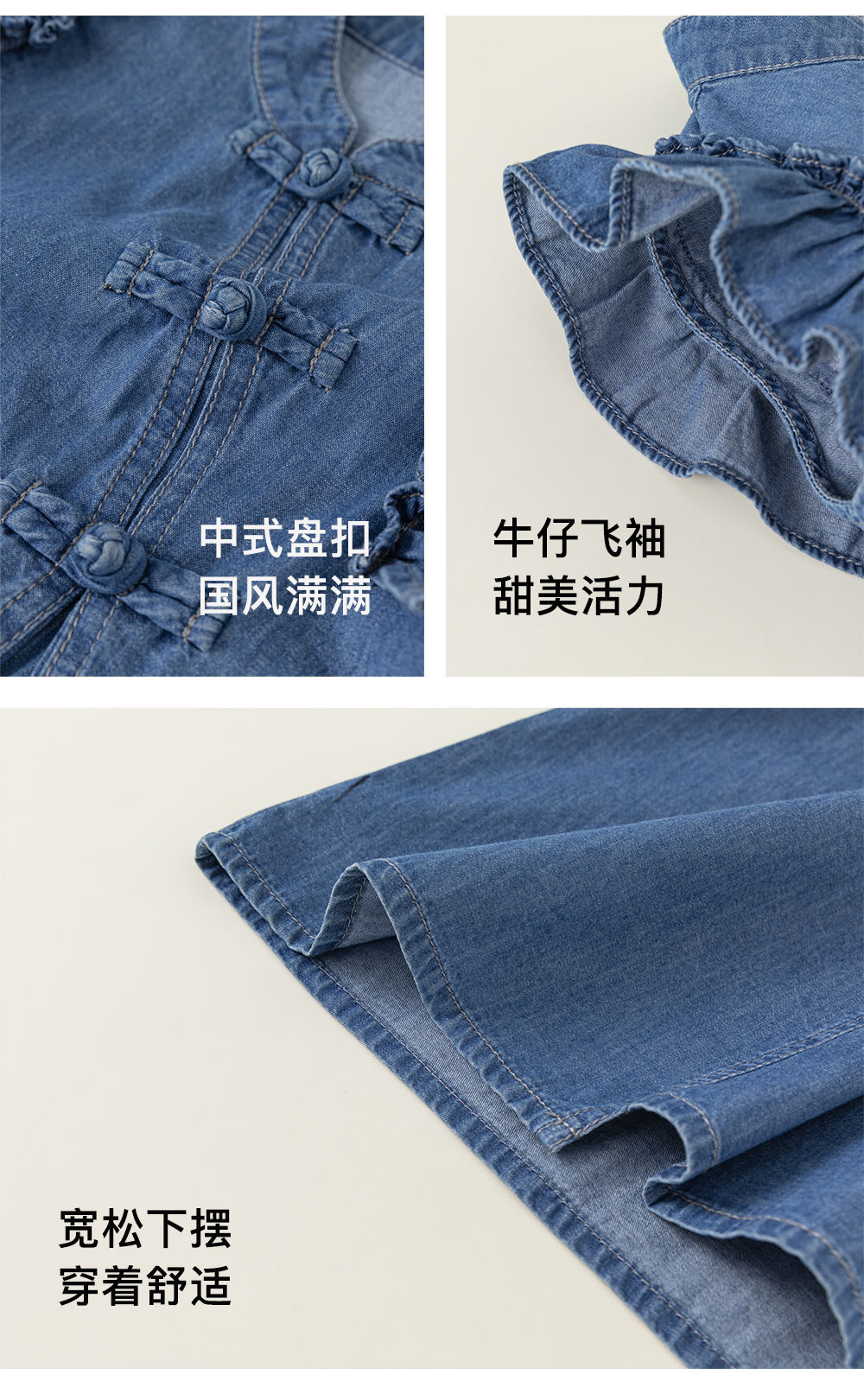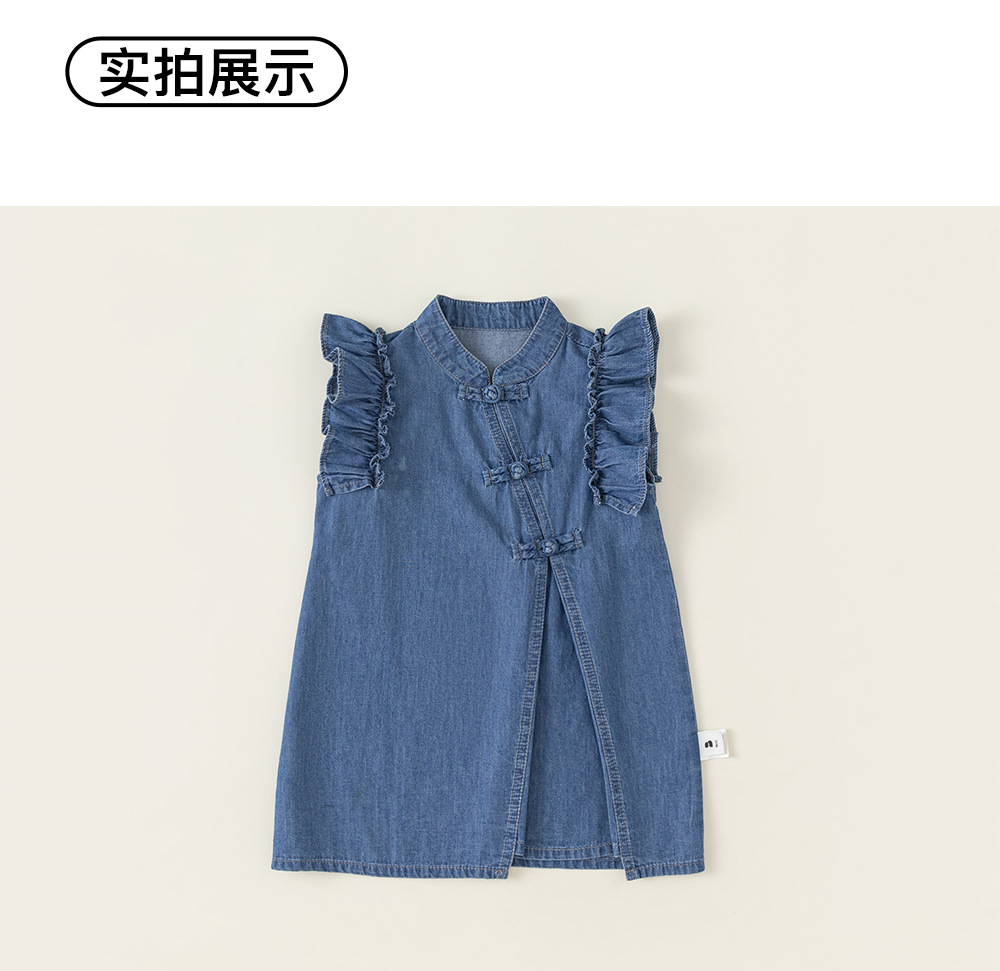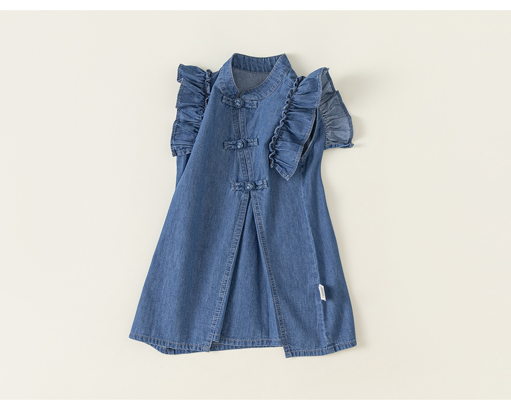 Детская одежда Youbao, летнее модное платье для девочек, китайская джинсовая юбка с маленькими рукавами-фонариками