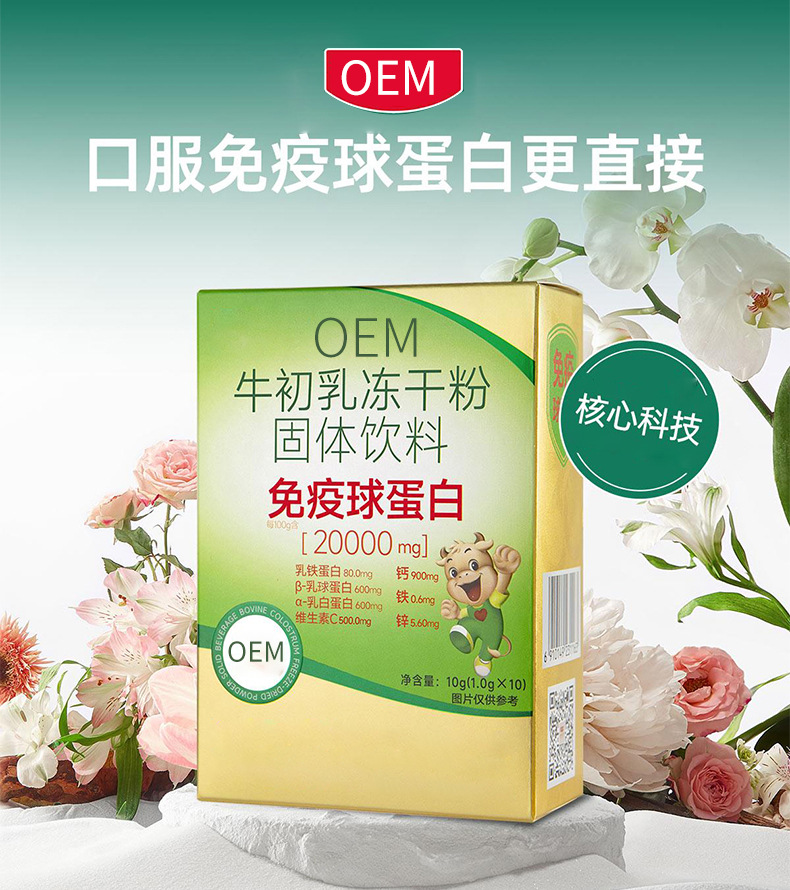 OEM порошок колострума коровы, лиофилизированный, твердый напиток, настраиваемый, питательный белок