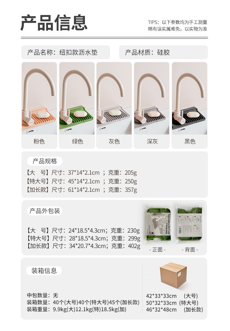 Улучшенный силиконовый коврик для слива с кнопкой, кухонный коврик для хранения, мат для умывальника