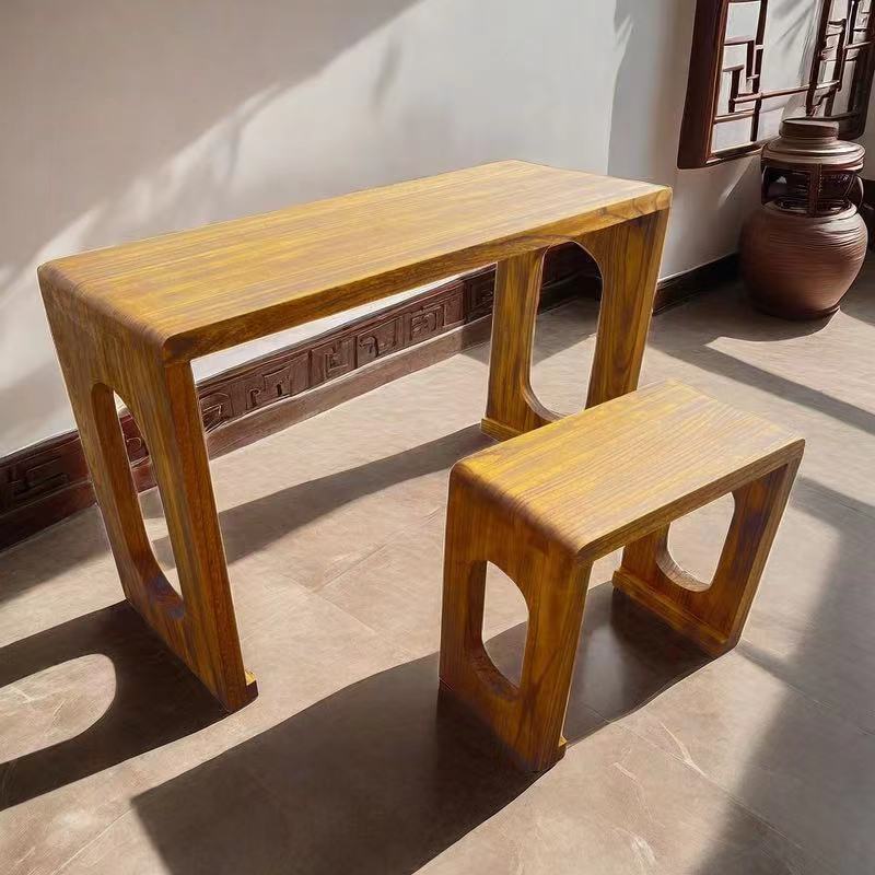 Антикварный стол для гуциня из массива дерева, китайский чайный стол, стол для каллиграфии, стол с шипами и табурет из сожженной павловнии