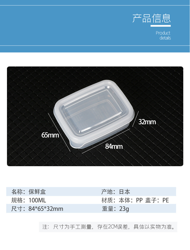 ![]() | 100ml crisper box kk-02 | 1шт: ¥2.50, 100шт: ¥2.40, 2000шт: ¥2.10 | 4814 | 5937646035615 |