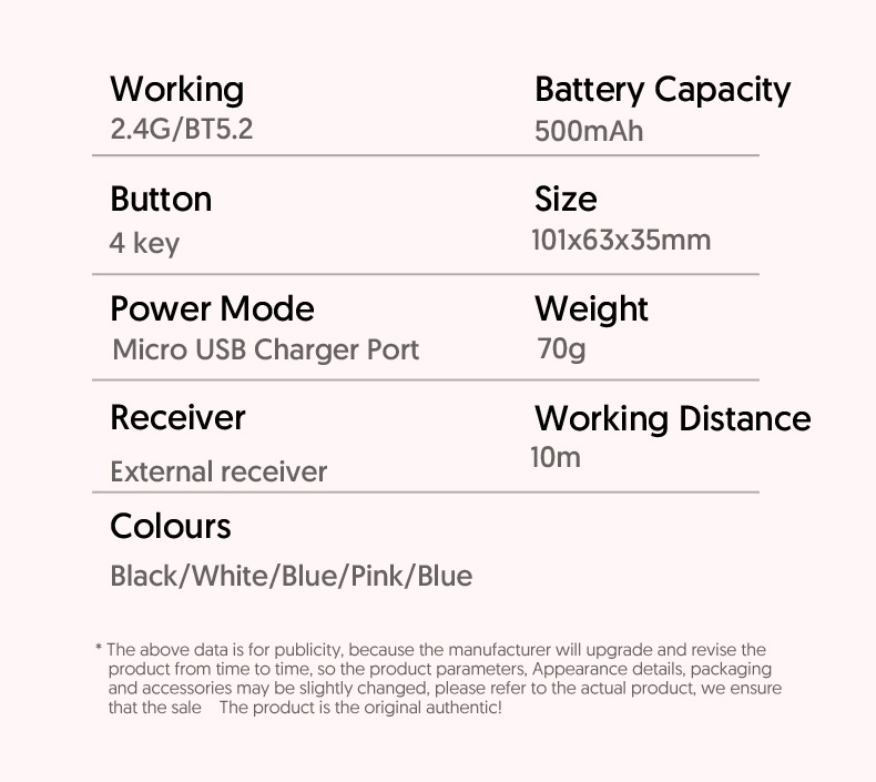 ![]() | 256 battery model (2.4g+bluetooth)---pink | ¥6.0 / ≈ 72 ₽ | 99967 | 5771137761308 | |