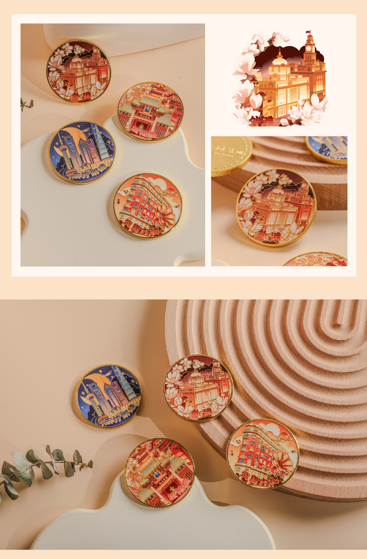 Шанхай памятные монеты оптом туристические культурные и креативные подарки здание Уканг восточная жемчужина набережная храм городского бога в упаковке