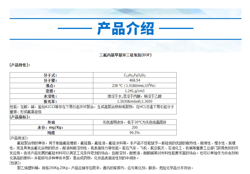 Трифторпропилметилциклотрисилоксан D3F, производитель фторосиликонового промежуточного продукта, фактическая цена