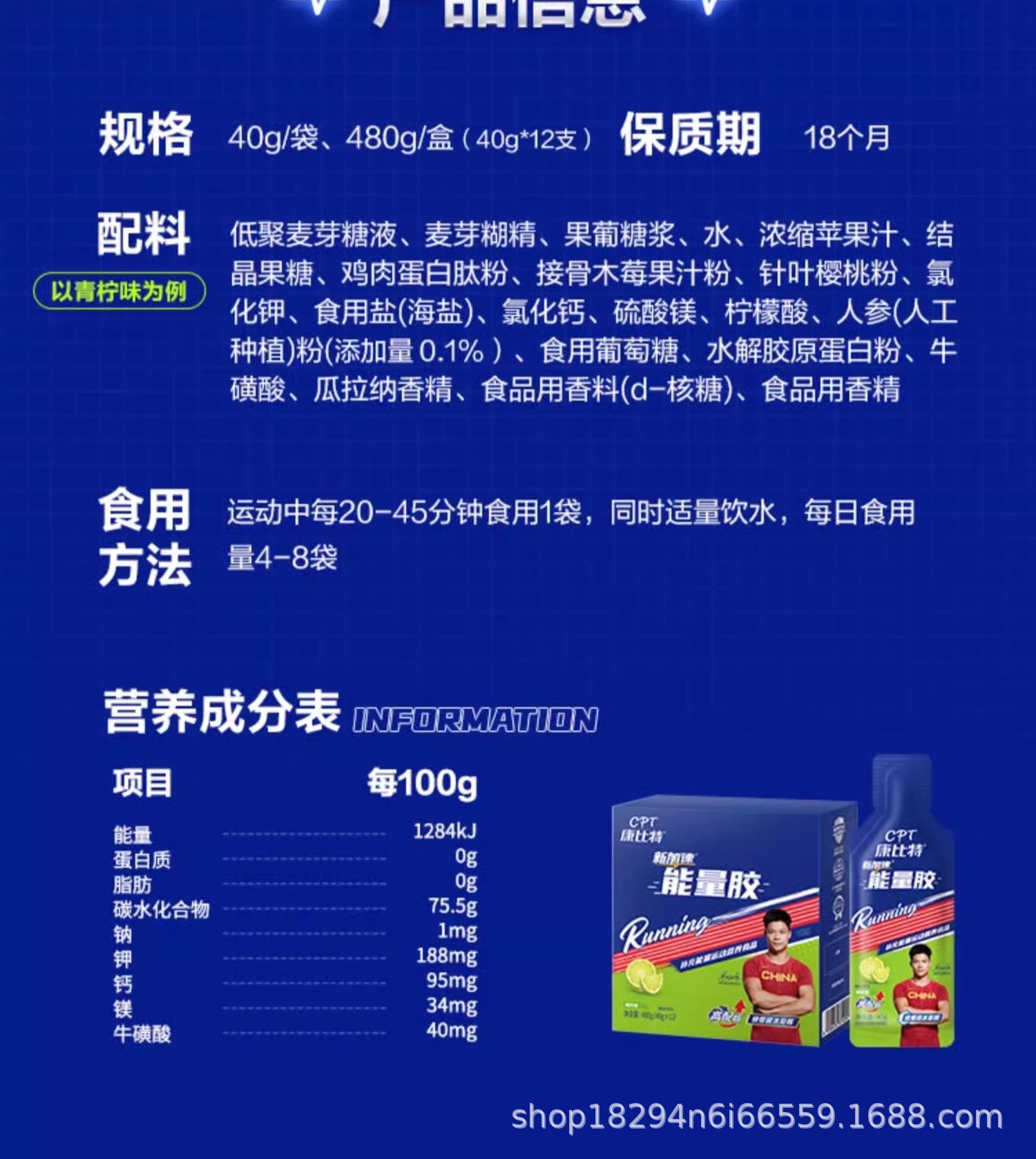 ![]() | Kangbit 7-fold energy gel electrolyte (1 stick of candied haws flavor) | ¥4.5 / ≈ 54 ₽ | 345 | 5944790490462 | |