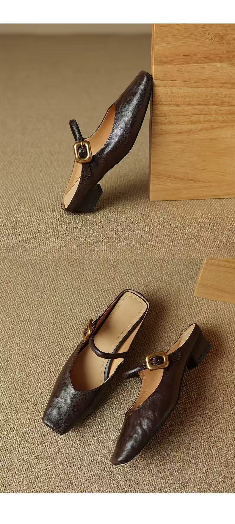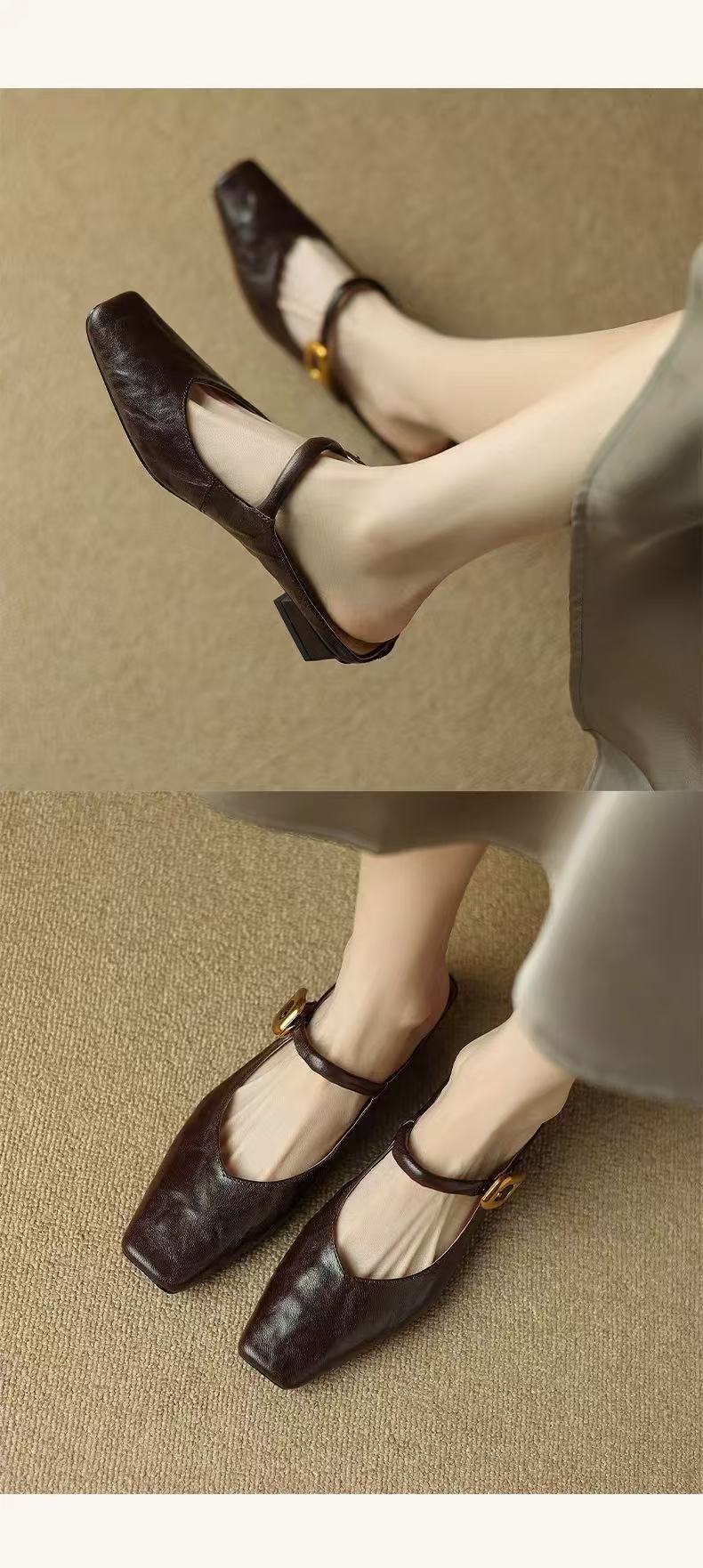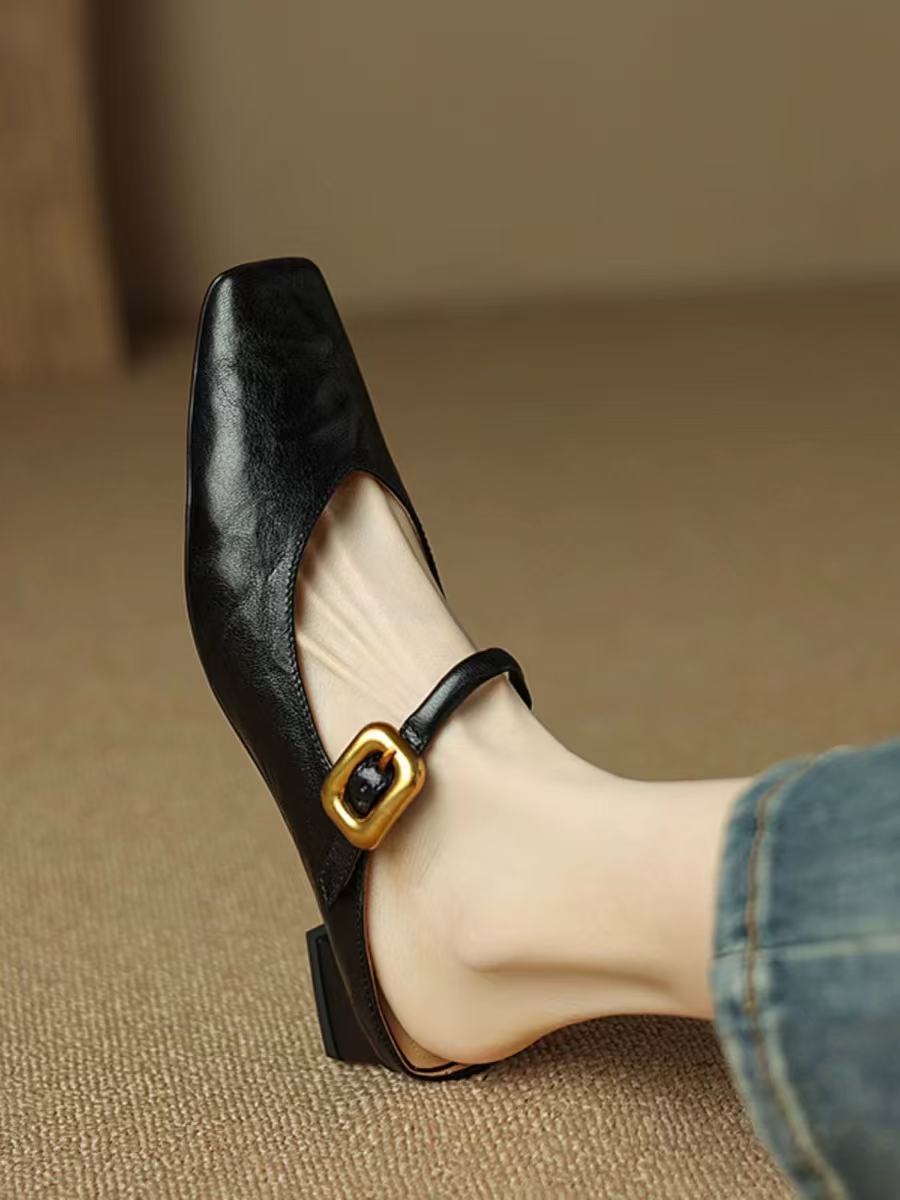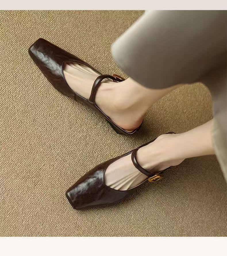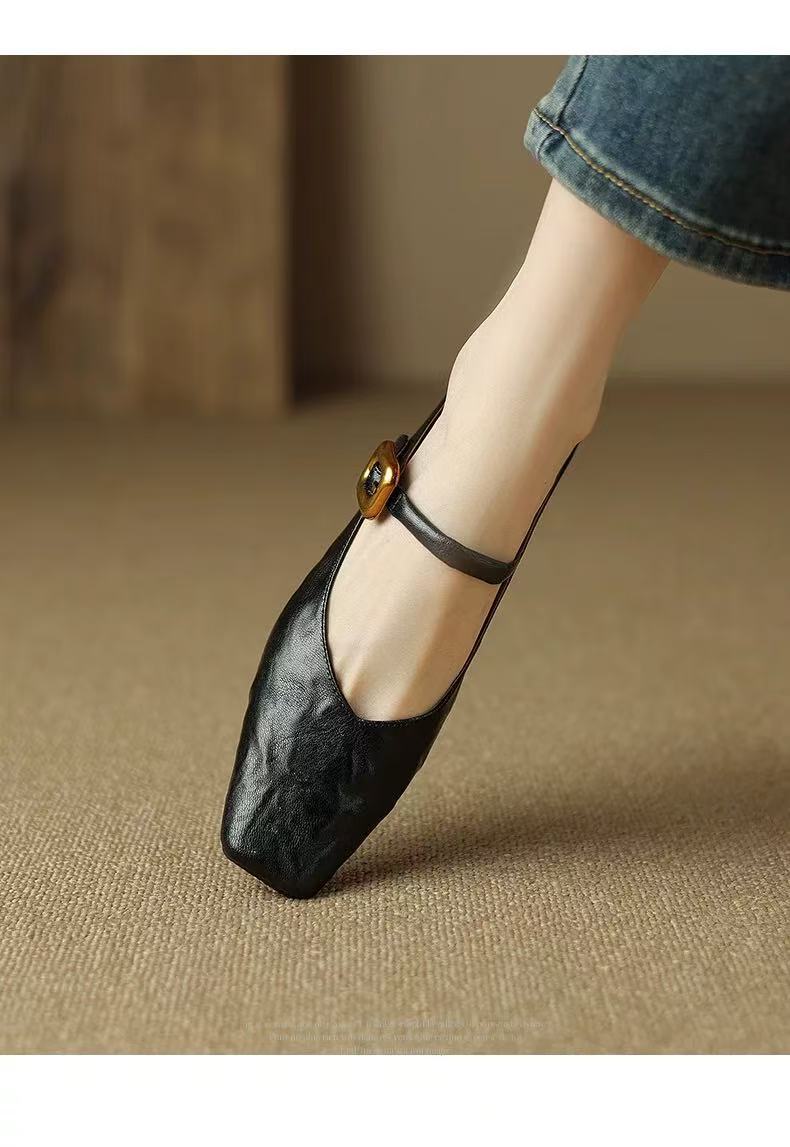 Женские мягкие и комфортные туфли из овчины, новые квадратные носки, художественные ретро туфли с низким каблуком 2025