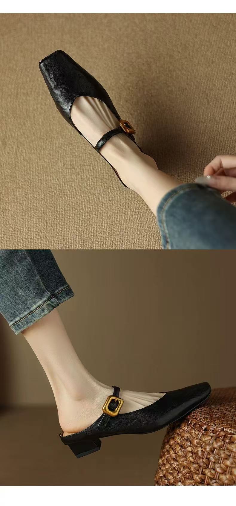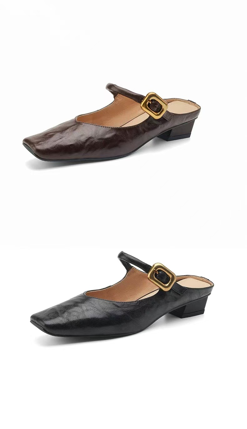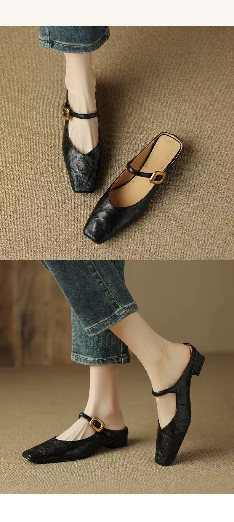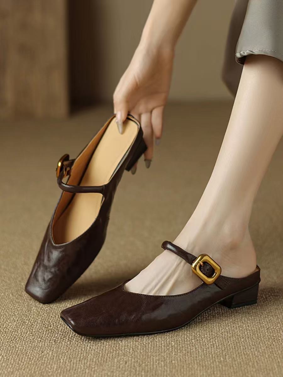 Женские мягкие и комфортные туфли из овчины, новые квадратные носки, художественные ретро туфли с низким каблуком 2025