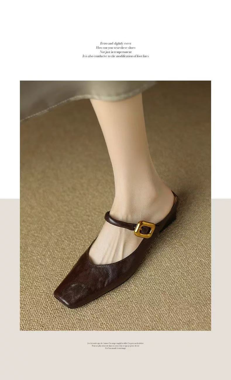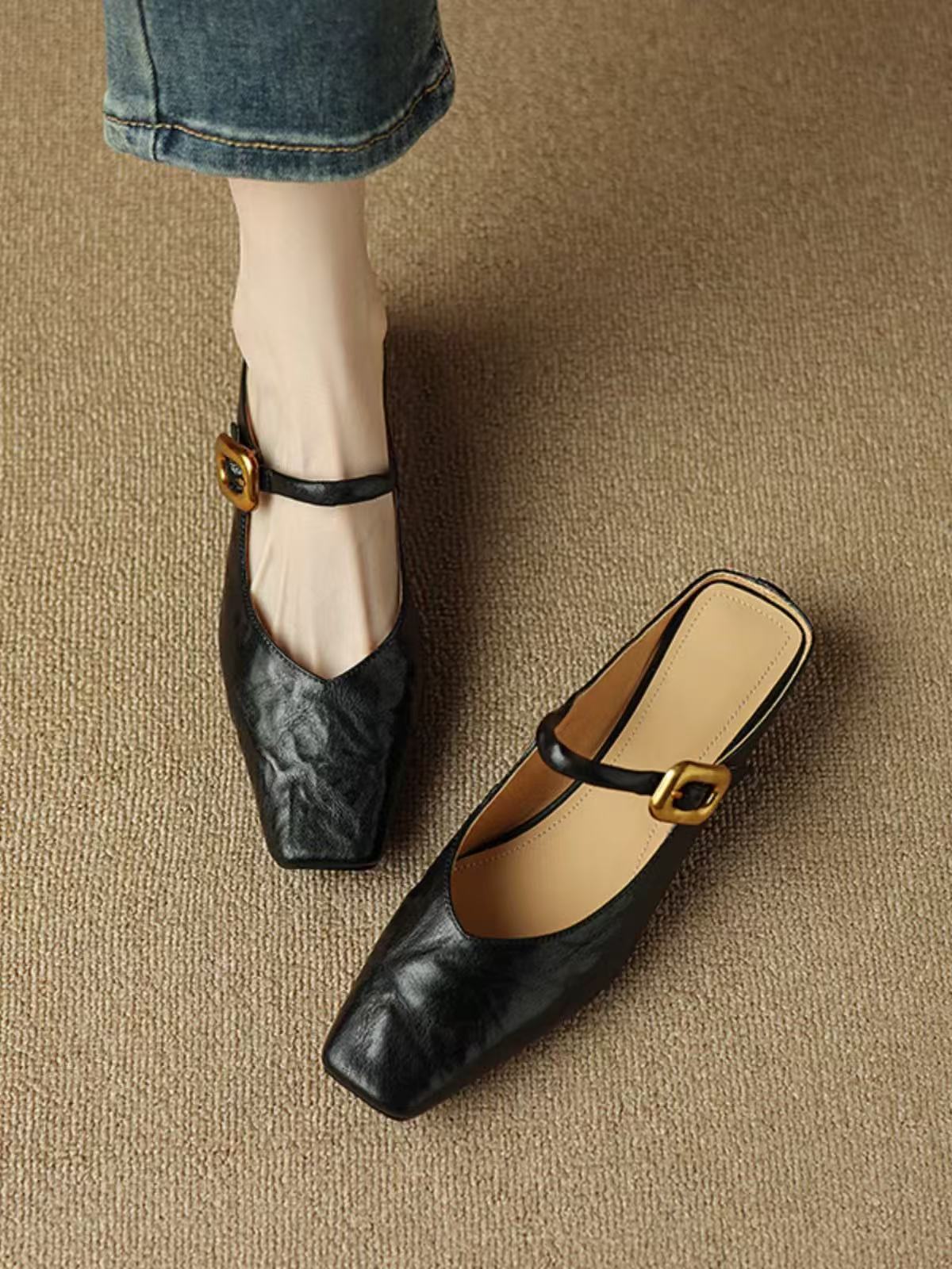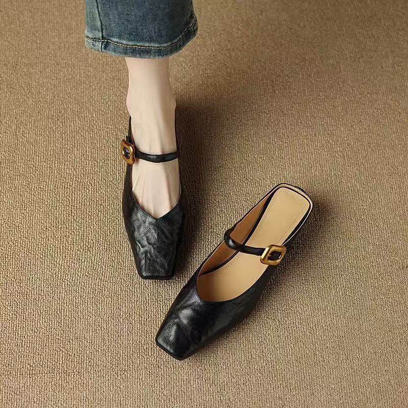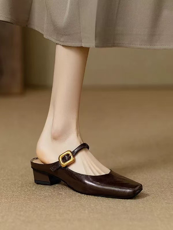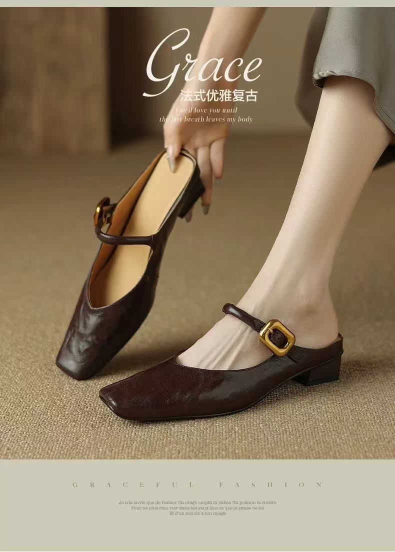 Женские мягкие и комфортные туфли из овчины, новые квадратные носки, художественные ретро туфли с низким каблуком 2025