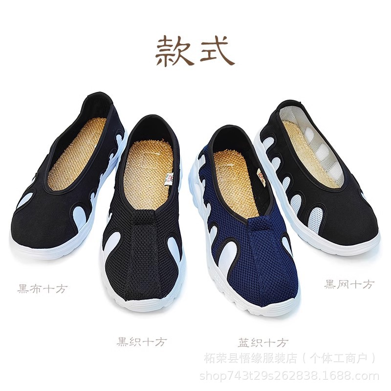 Даосские туфли для весны и лета, черные тканевые сетчатые туфли для практики тайцзи, дышащие, нескользящие, легкие, мягкие квадратные туфли