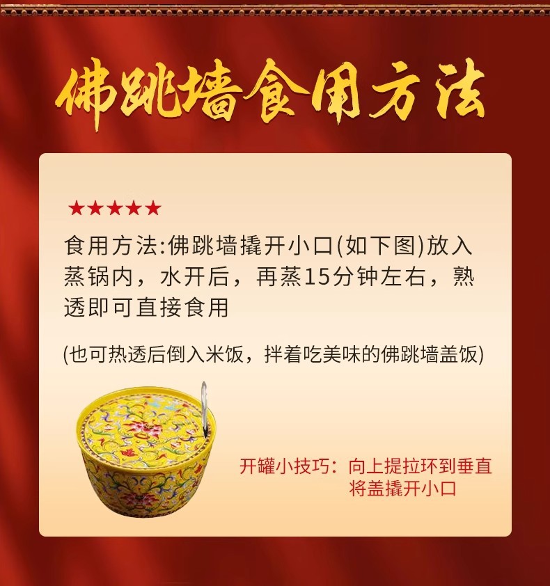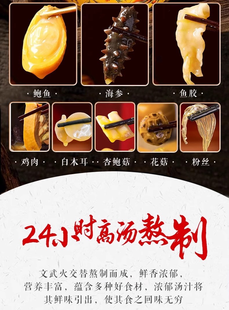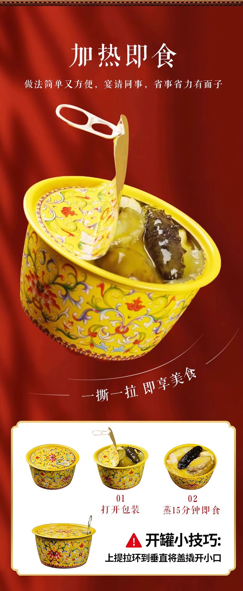Коммерческие высококачественные полуфабрикаты, морской огурец и абалон в консервированном тушеном виде, разогрев, порционная упаковка, комнатная температура, золотой суп, Будда перепрыгивает стену