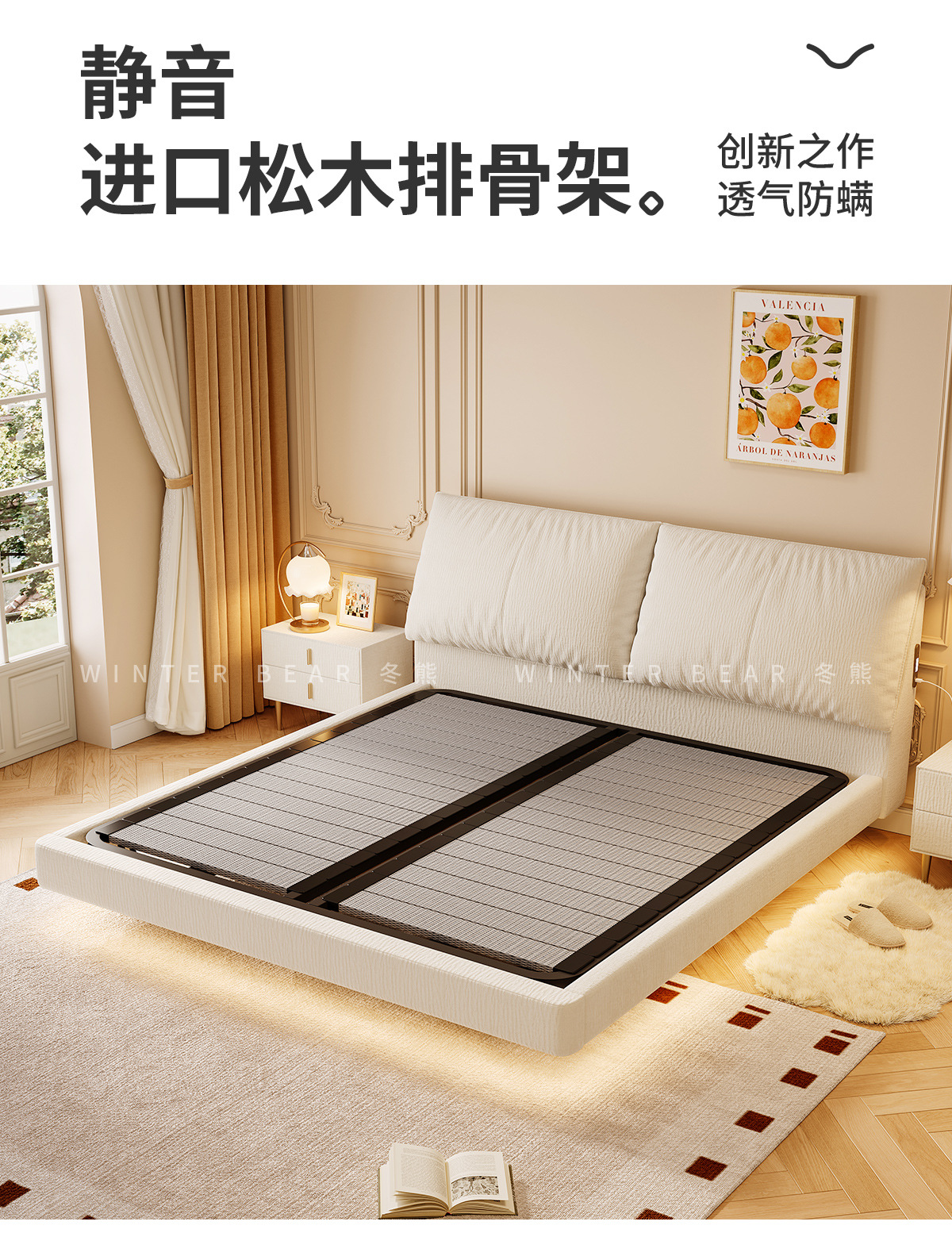 ![]() | Anti-fouling chenille + 5-star double-sided mattress*1/beech solid wood frame | 1800mm*2000mm suspended structure | ¥4498.0 / ≈ 54 181 ₽ | 199 | 5769862104837 | |