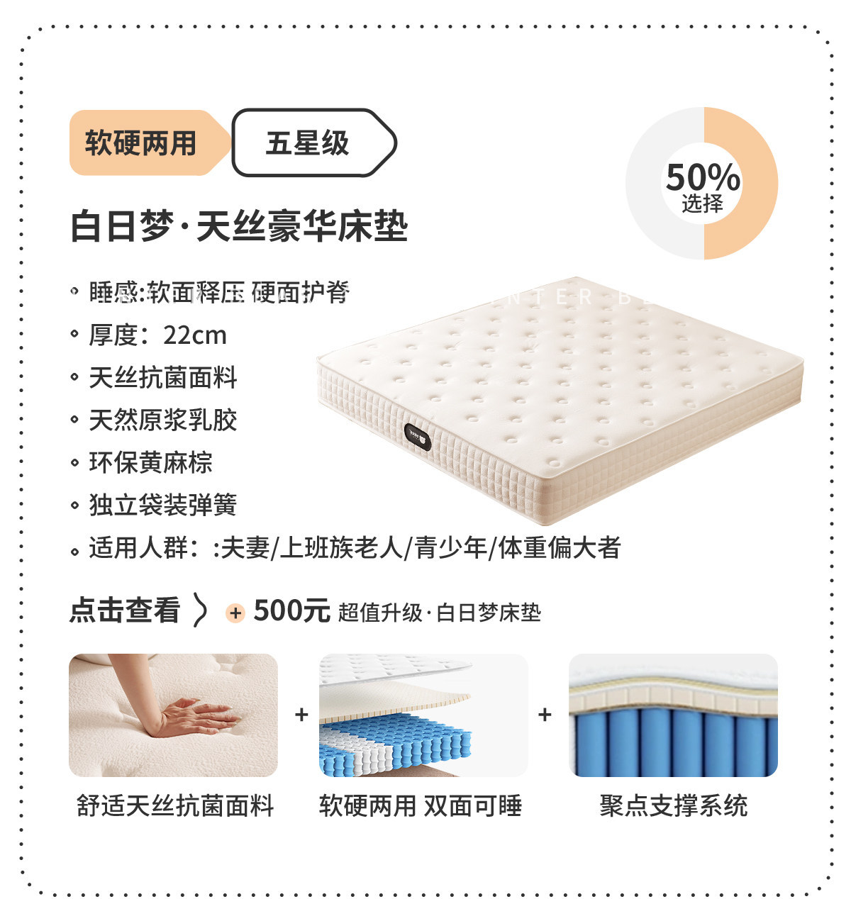 ![]() | Thickened first-layer cowhide + 5-star double-sided mattress*1/encrypted thickened silent frame | 1500mm*2000mm suspended structure | ¥4113.0 / ≈ 49 543 ₽ | 199 | 5769862104844 | |