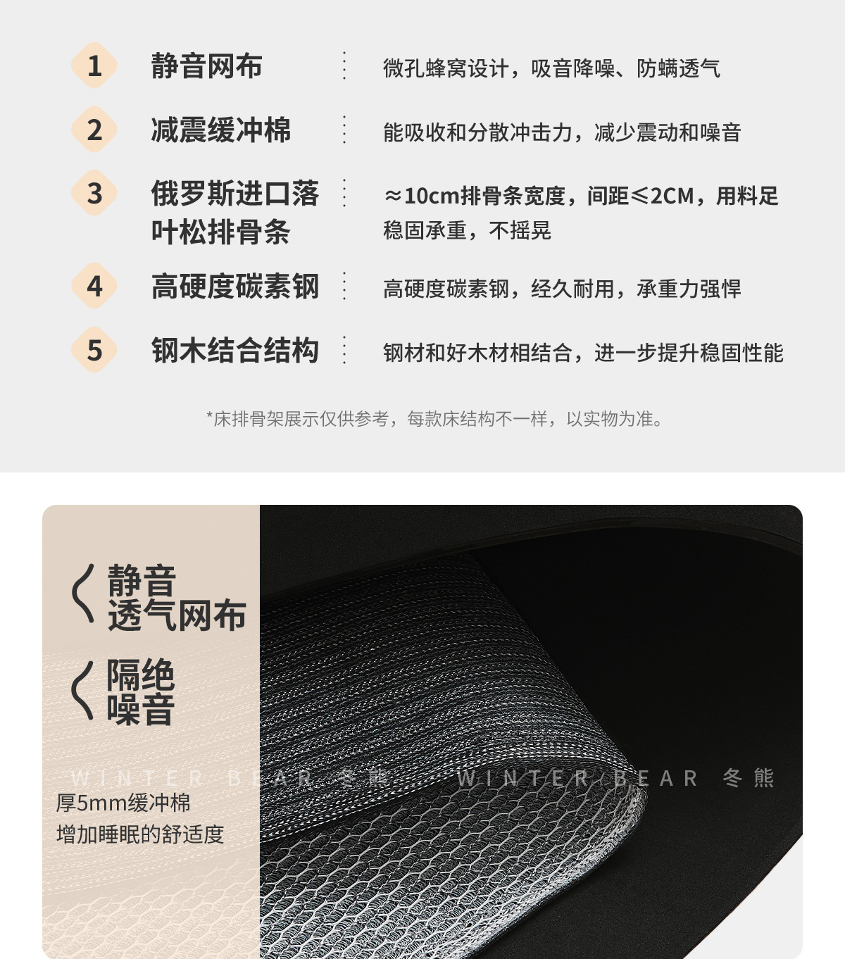 ![]() | Cat claw cloth + 5-star double-sided mattress*1/encrypted thickened silent row frame | 1800mm*2000mm suspended structure | ¥3802.0 / ≈ 45 797 ₽ | 199 | 6020433408485 | |
