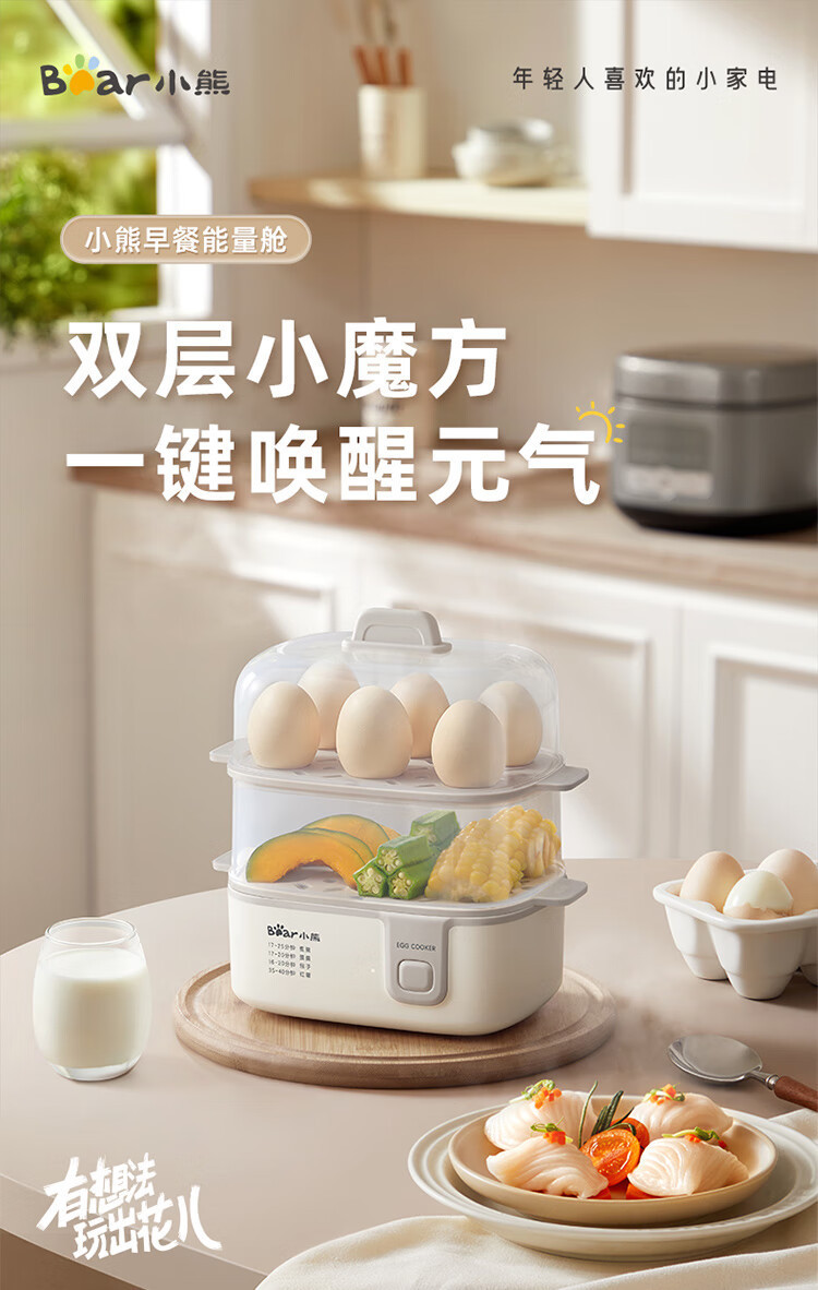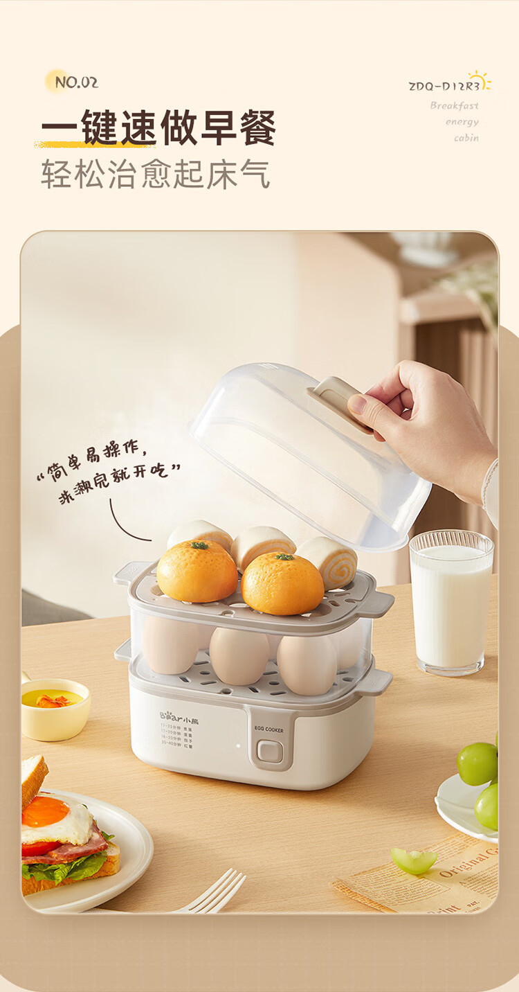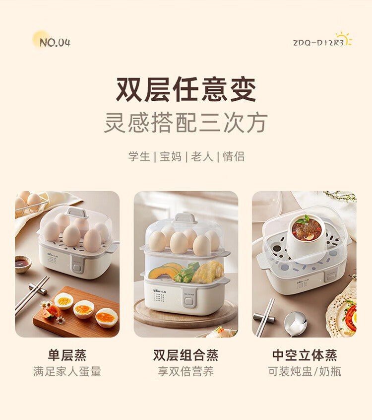 Пароварка для яиц Bear Zdq-D12R3, пароварка для яиц, двухслойная, многофункциональная, мини для завтрака