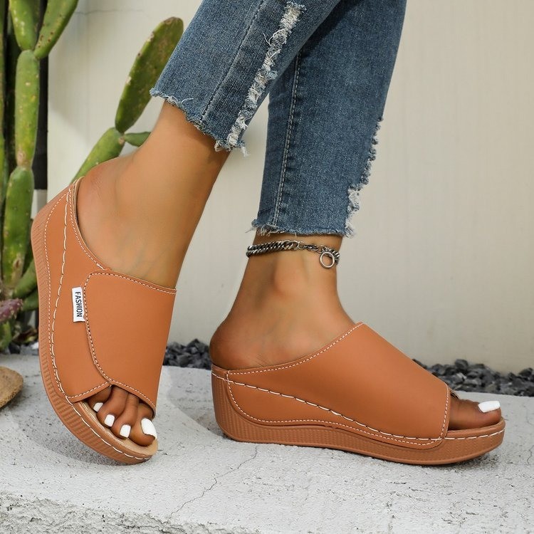 Тапочки большого размера на платформе для женщин 2025 нового сезона простые модные с открытым носком