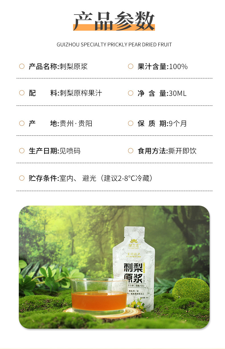 30 мл сок из колючей груши маленькая упаковка удобный пакет Гуйчжоу пюре из колючей груши оригинальная жидкость удобно носить в поездках