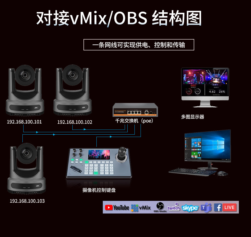 Ndi Ptz Camera 4K60, камера для прямой трансляции, Ai отслеживание человека, трансляция с церковной сцены, Obs/Vmix
