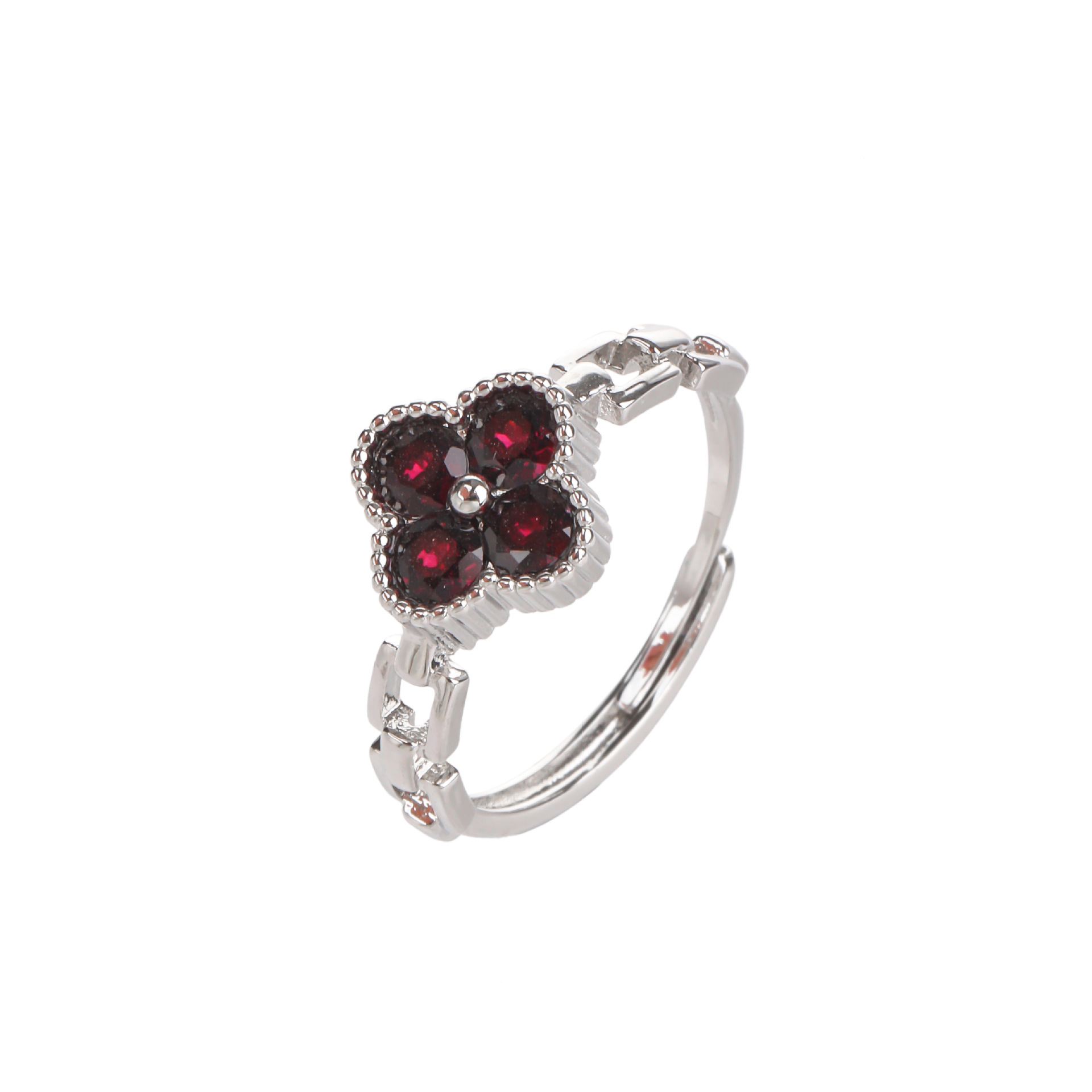 Кольцо из натурального граната Tr-053 3.5 мм в стиле открытого кольца с четырьмя лепестками, популярное и доступное роскошное украшение, не тускнеет