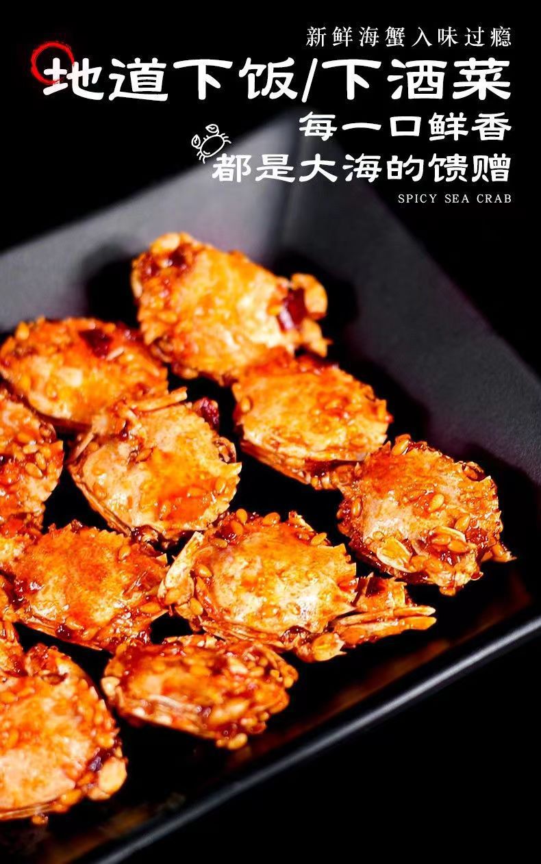 Готовые к употреблению острые мелкие морские крабы, морепродукты из детства, острые морепродуктовые закуски, сладкие и острые хрустящие сушеные крабы, специальность Шаньдун