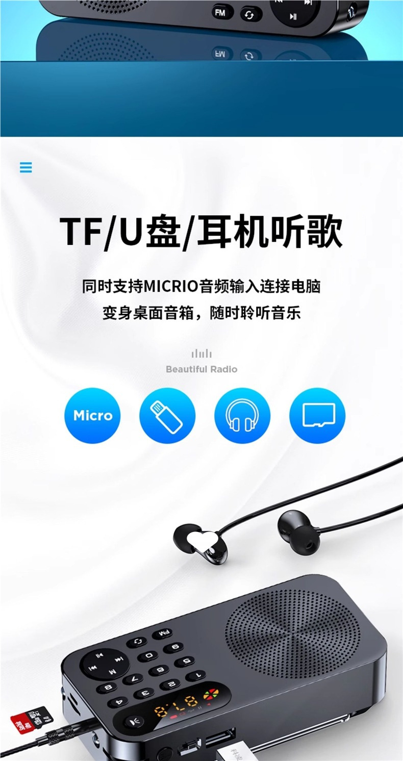 Новое радио для пожилых, портативная мини-колонка, карточный плеер, аудиоплеер, рассказывание историй, пение и прослушивание оперы
