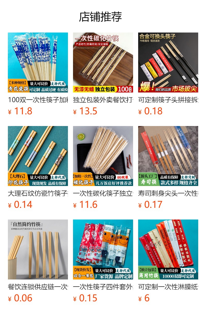 ![]() | 6.3*7*27 carbonized hot pot chopsticks with knots | 【bulk】 | ¥0.1 / ≈ 1 ₽ | 0 | 5932285645879 | |