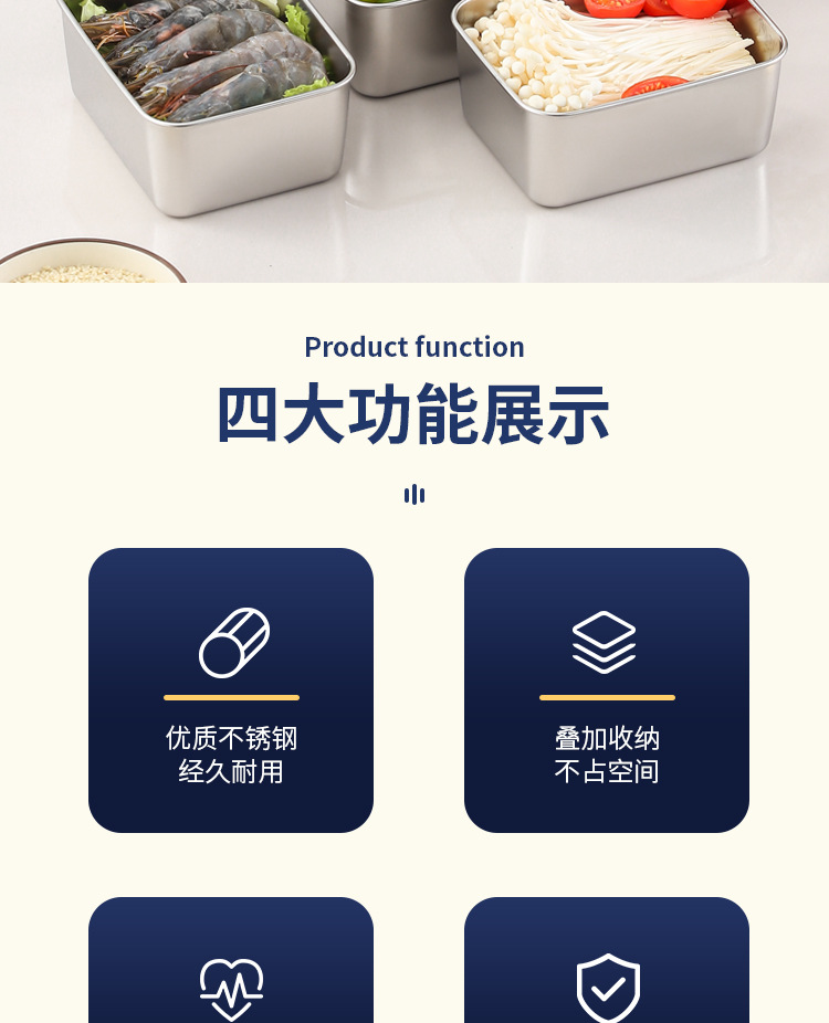 Функция Can be refrigerated/freezed/oven heated/food storage and preservation/can be stacked/covered to prevent dust
