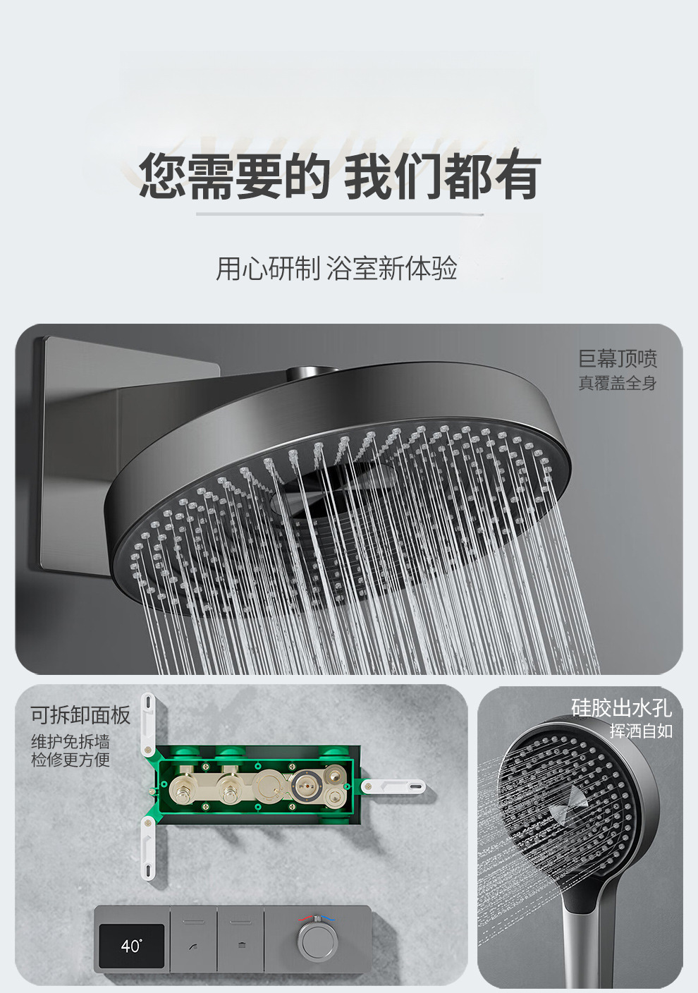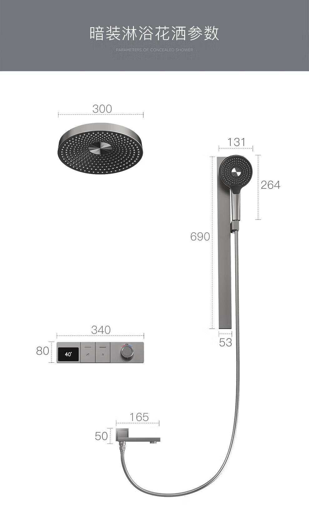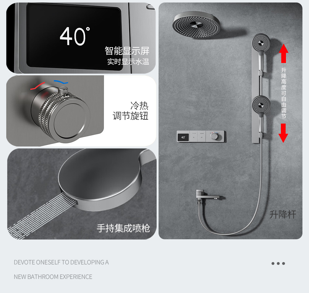 Набор душа с цифровым дисплеем, полка для ванной, стиль дождя