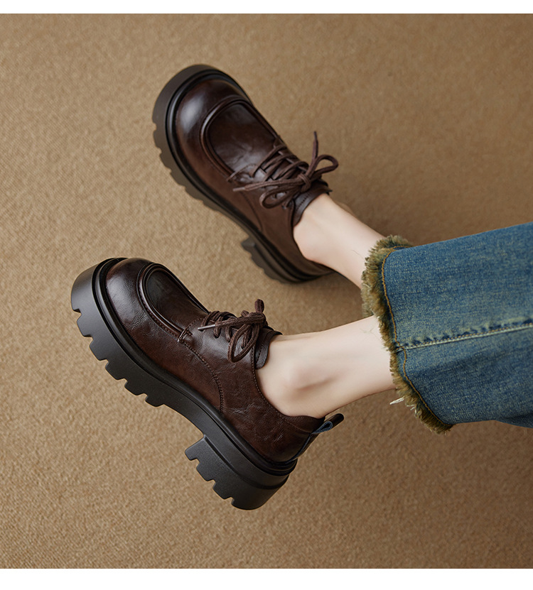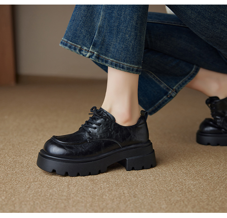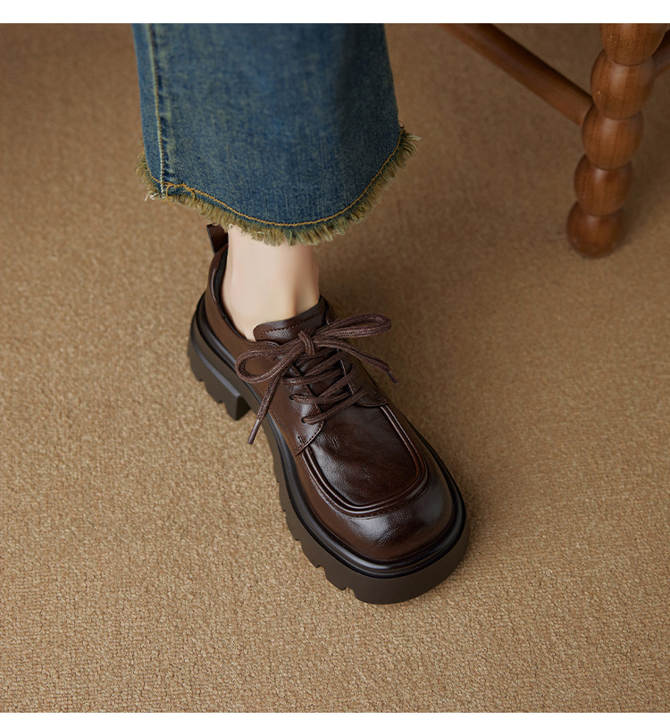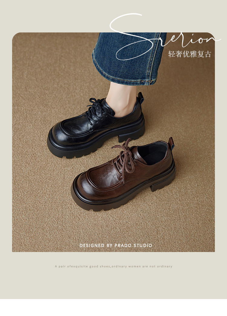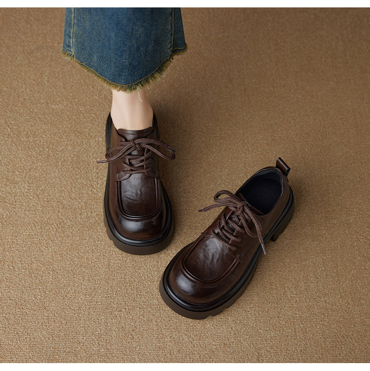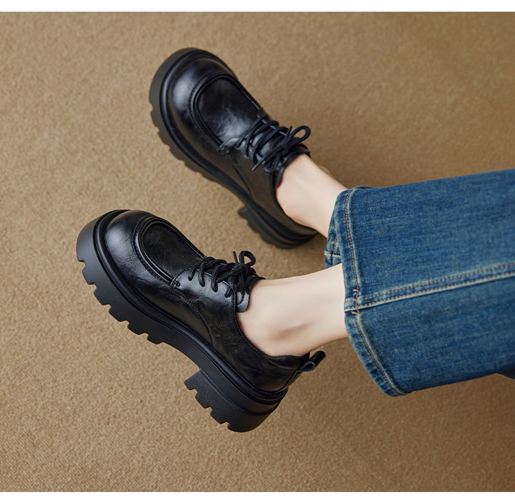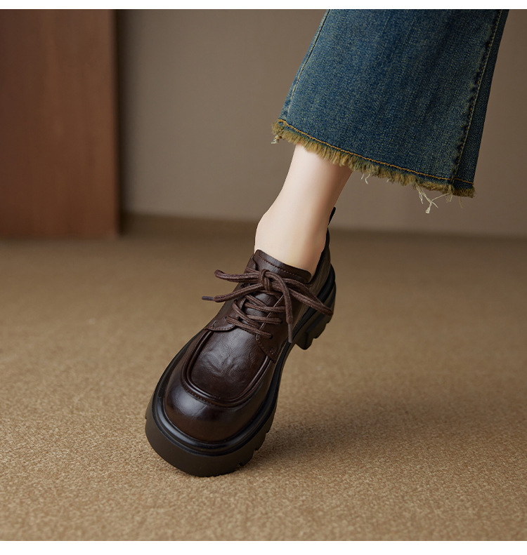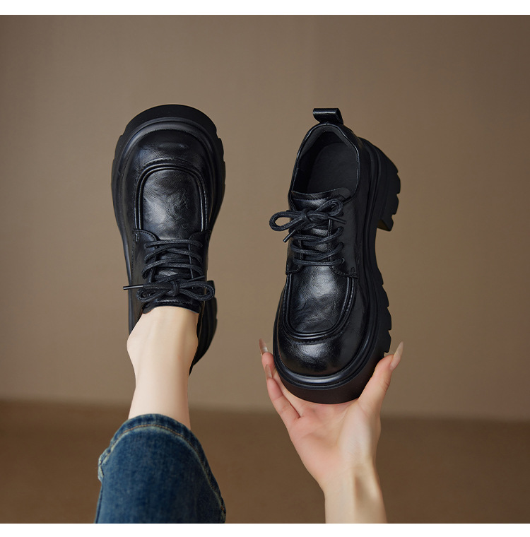 Ретро кожаные туфли на высоком каблуке в британском стиле для женщин, новая осенняя модель 2025, лоферы с толстой подошвой для миниатюрных женщин