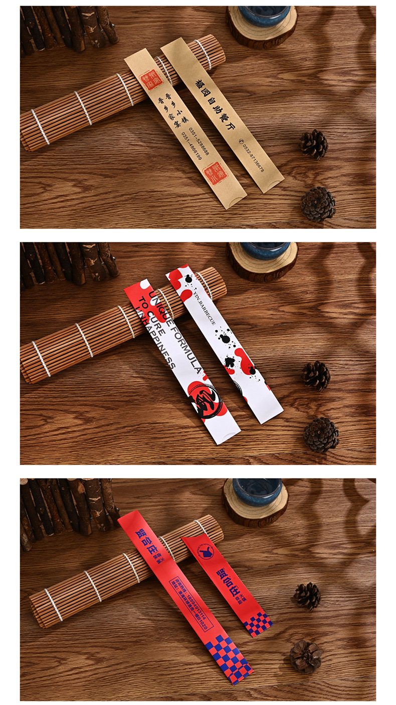 Чехлы для палочек для еды одноразовые бумажные для отелей, чехлы для палочек для еды, упаковка для ресторана, печатная посуда для ресторанов