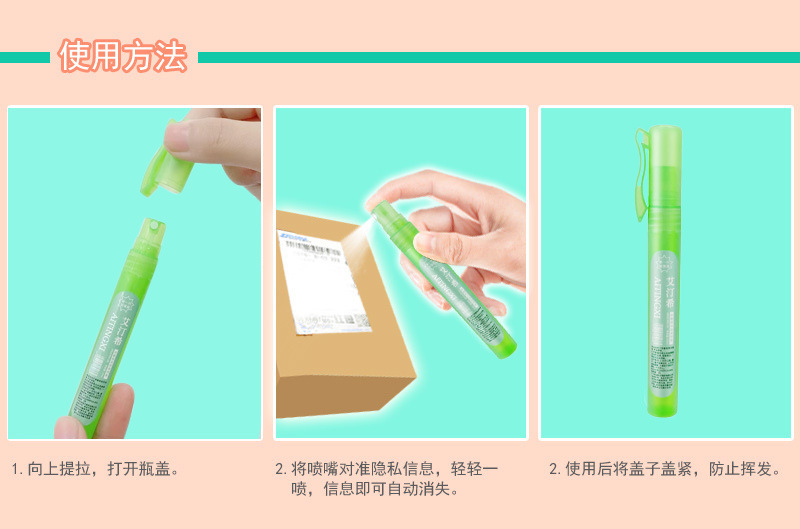 Спрей для коррекции термобумаги, жидкость для покрытия конфиденциальной информации, бесследный элиминатор, спрей-карандаш, одноразовый элиминатор