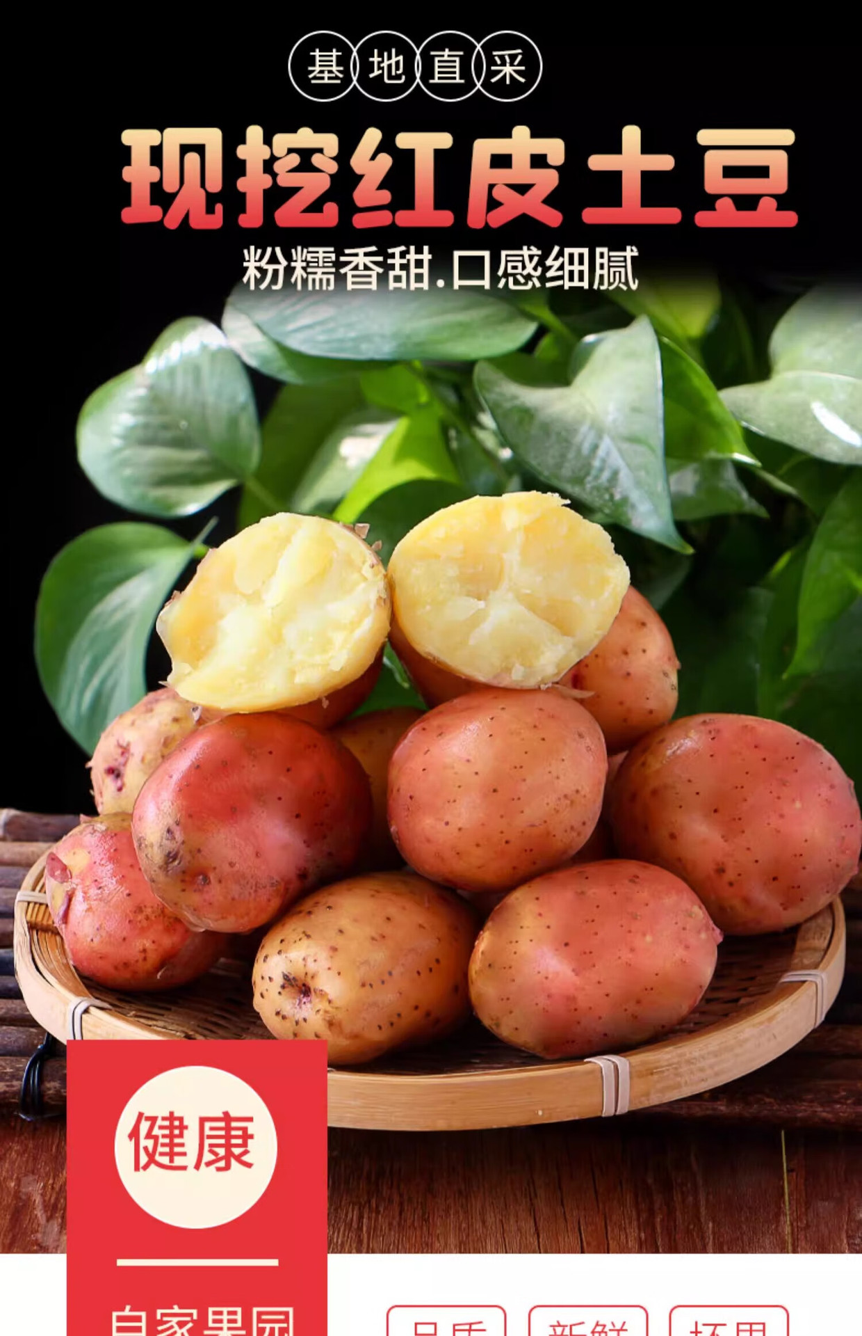 Свежий картофель с красной кожурой из фермерского хозяйства Юннань, мини-картофель, овощи в коробке, 4.5кг средние плоды