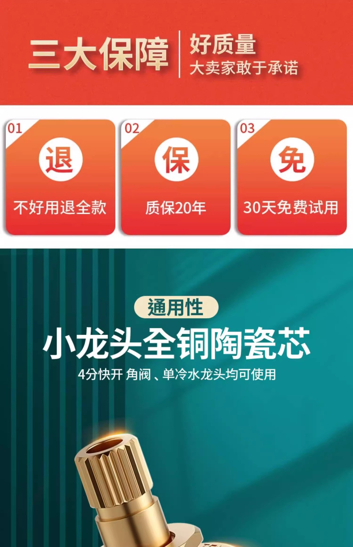 Картридж крана из качественной меди для кухни и ванной, универсальный картридж с горячей и холодной водой, замена из цельной меди