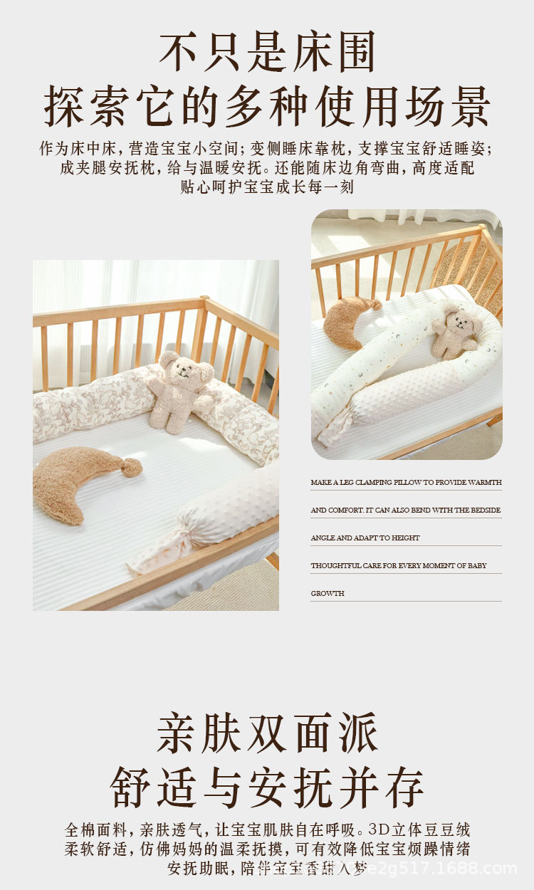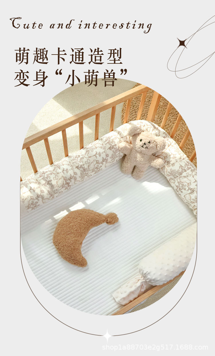Бортик для кровати съемный и washable сплошной из чистого хлопка успокаивающий противоударный бортик для детей