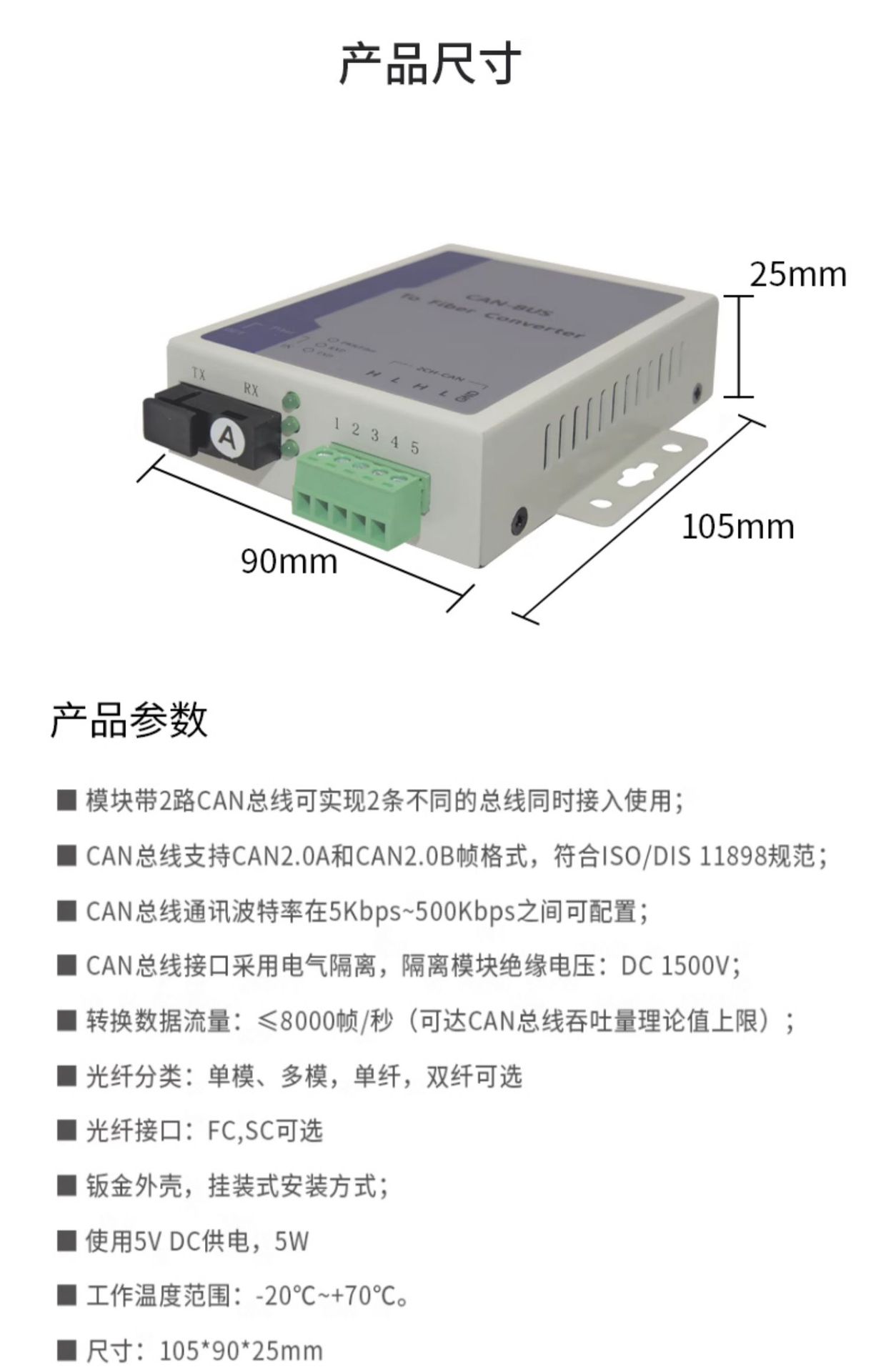 Оптический конвертер Can Fiber Bus на 1-канальный 2-канальный Rs485 данные оптический трансивер 1 пара 20 км Plug and Play