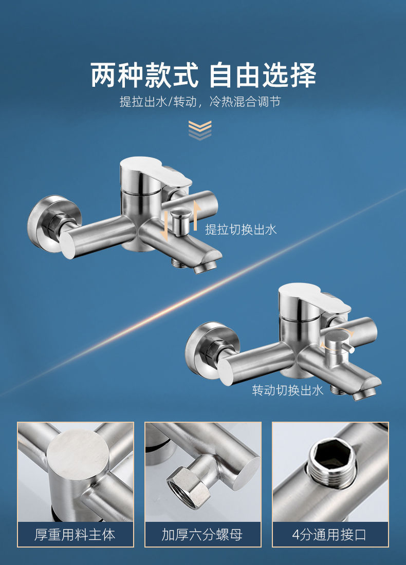 Смеситель для душа из нержавеющей стали, смеситель для ванны, встраиваемый двухходовой смеситель для горячей и холодной воды