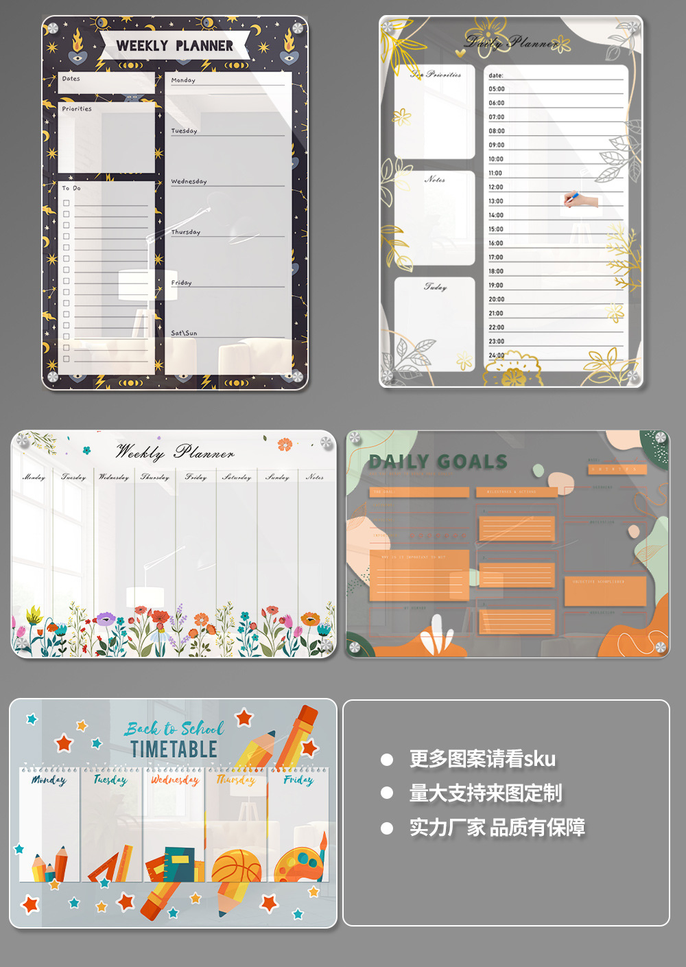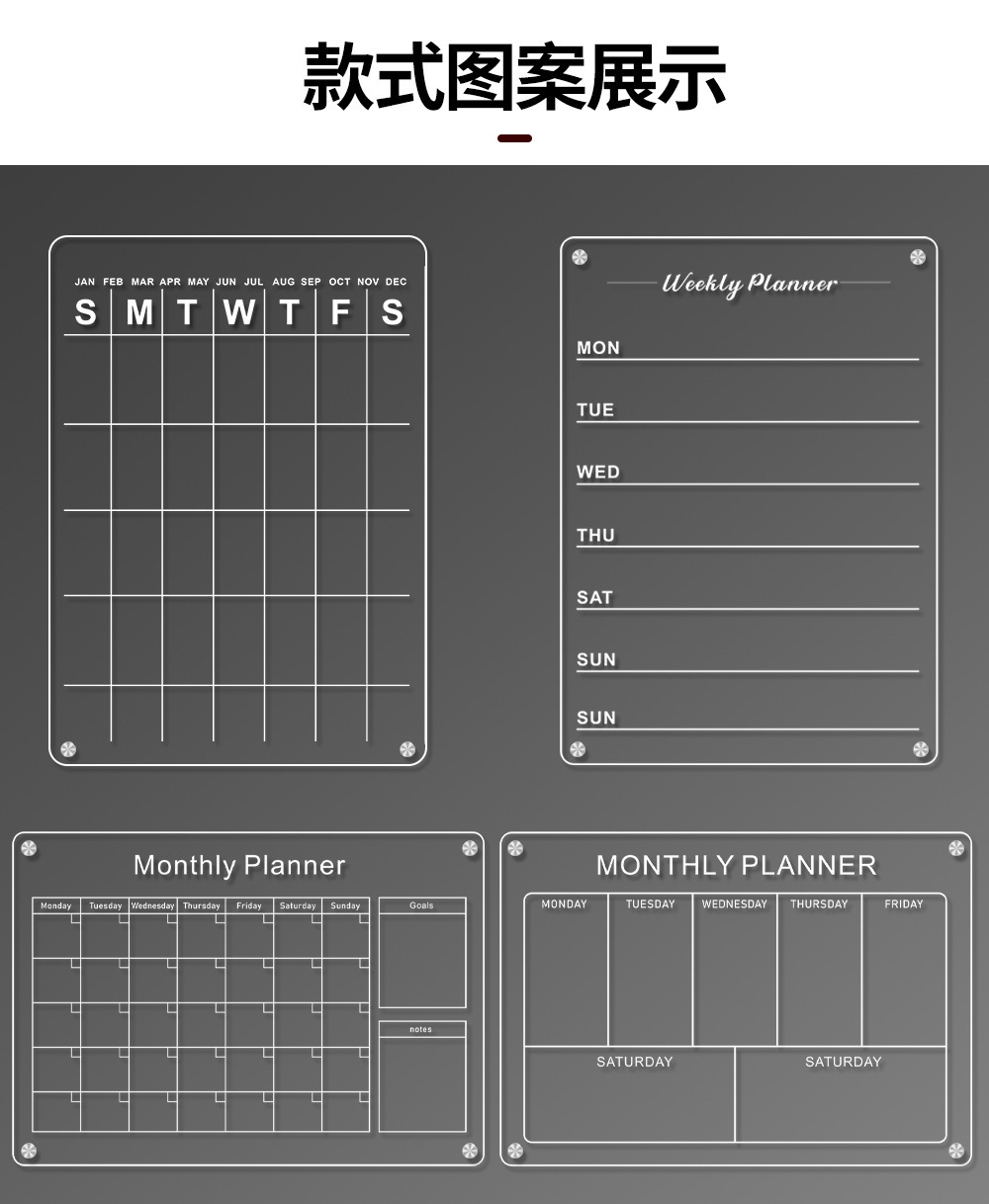 ![]() | 15*20cm transparent wall screw type (6 whiteboard markers included) | ¥7.5 / ≈ 90 ₽ | 21422 | 5943074575626 | |