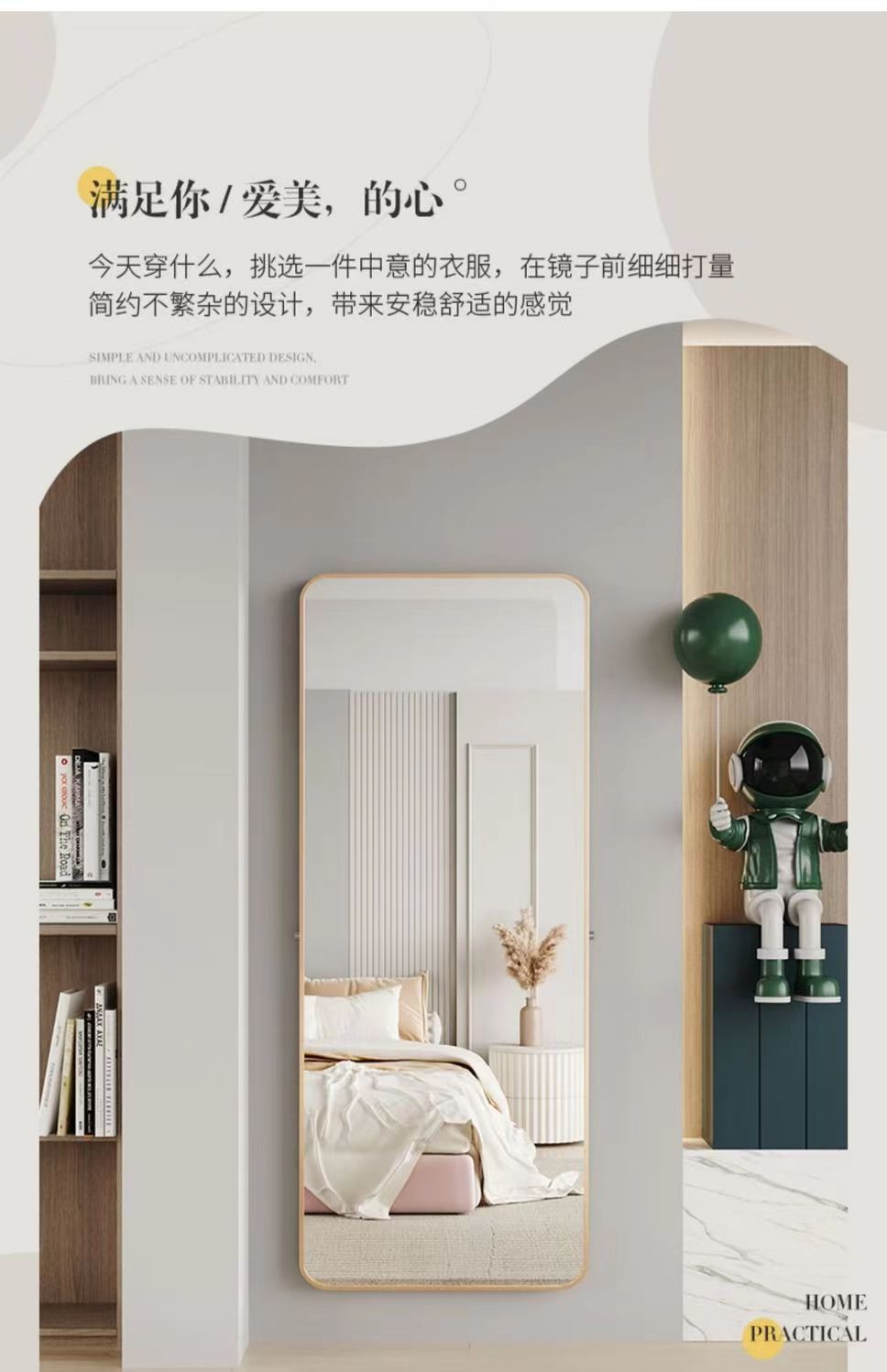Зеркало в полный рост Напольное зеркало Настенное зеркало Для девичьей спальни Трехмерное Настенное зеркало Для общежития Стиль Ins