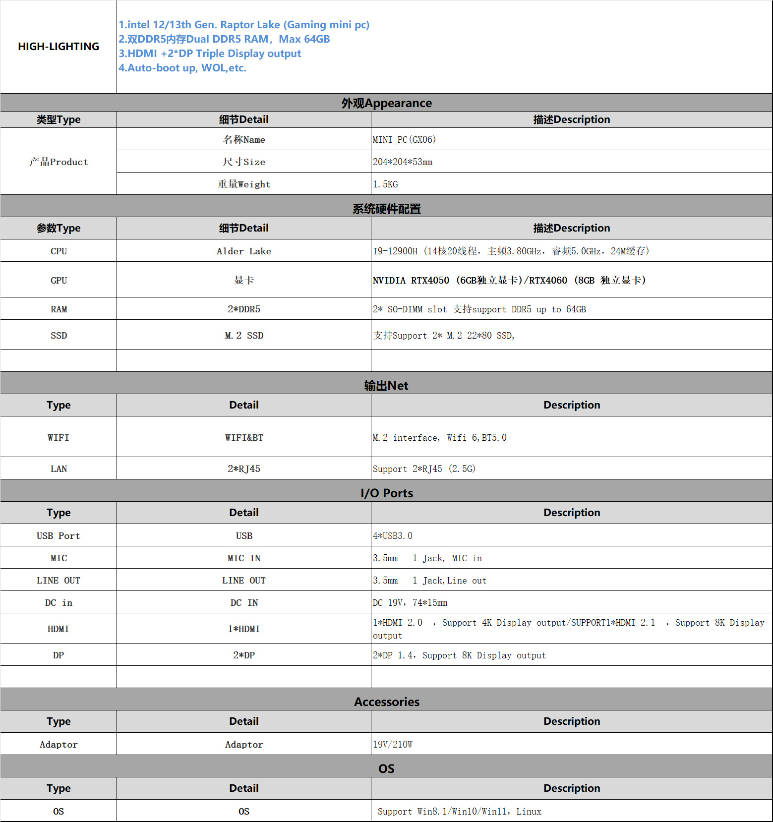 Мини-компьютер 12900H+Rtx4060 с независимым дисплеем Gx06Minipc14 игровой терминал с высокой скоростью