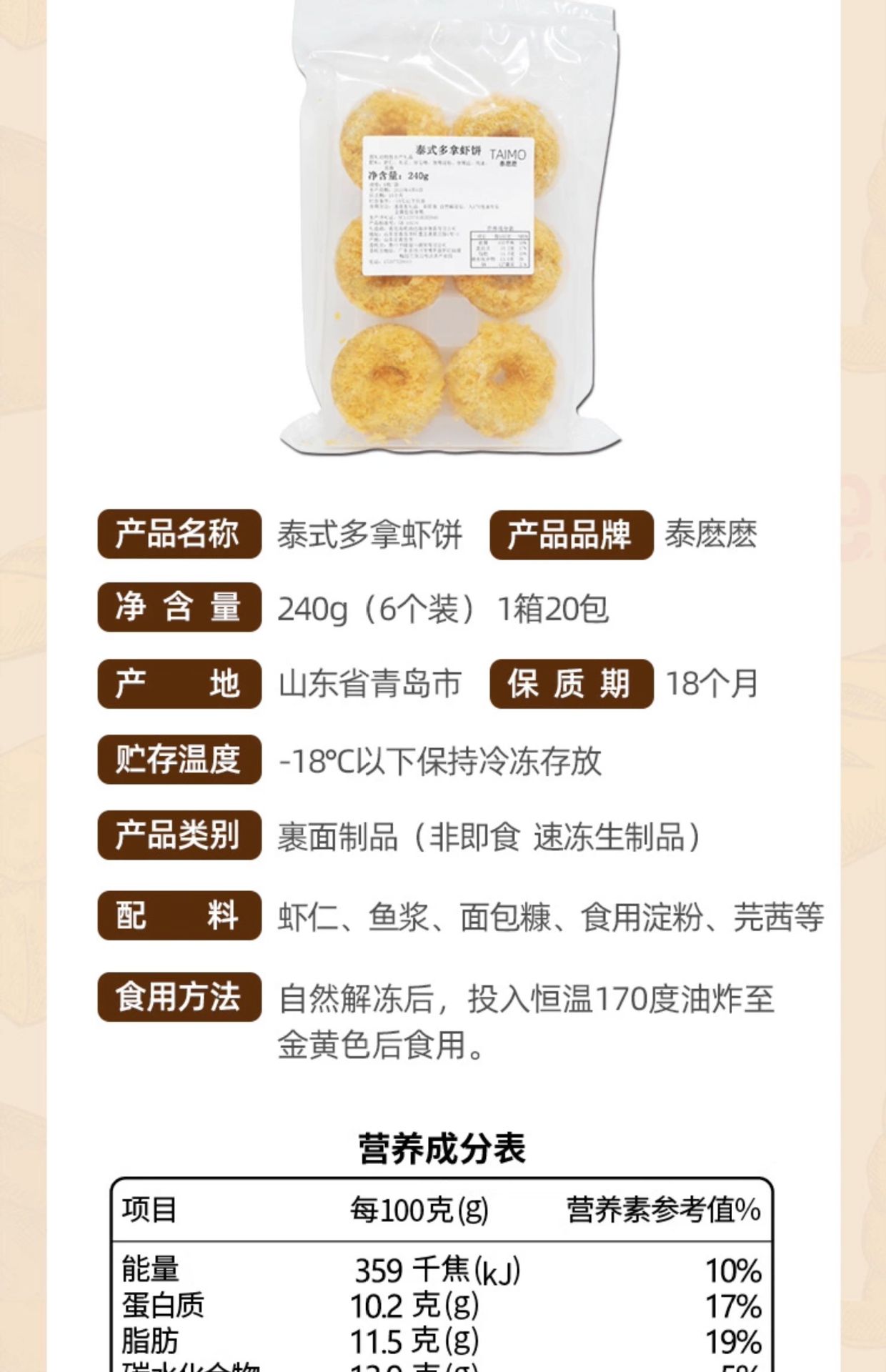Тайская мама тайский стиль креветочная котлета ресторан полуфабрикат коммерческое готовое блюдо 240г свежая замороженная креветочная котлета жареная закуска