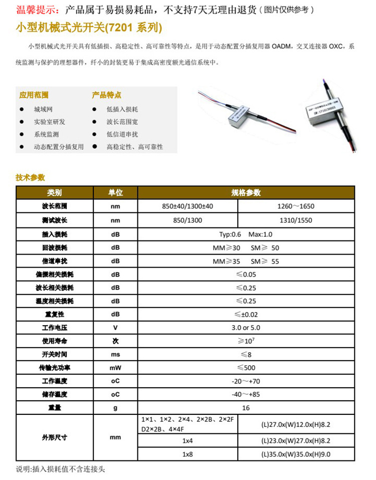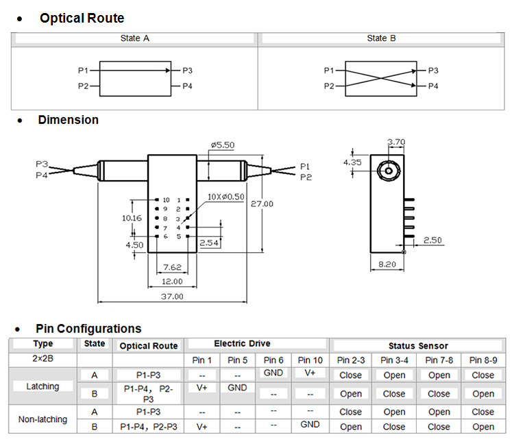 Механический оптический переключатель реле 2×2B с высокой поляризацией одномодовый многомодовый с защелкой и без Oadm/Oxc низкие потери
