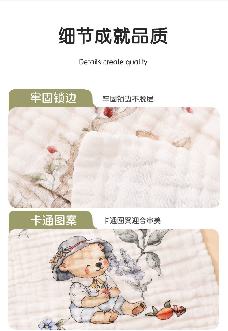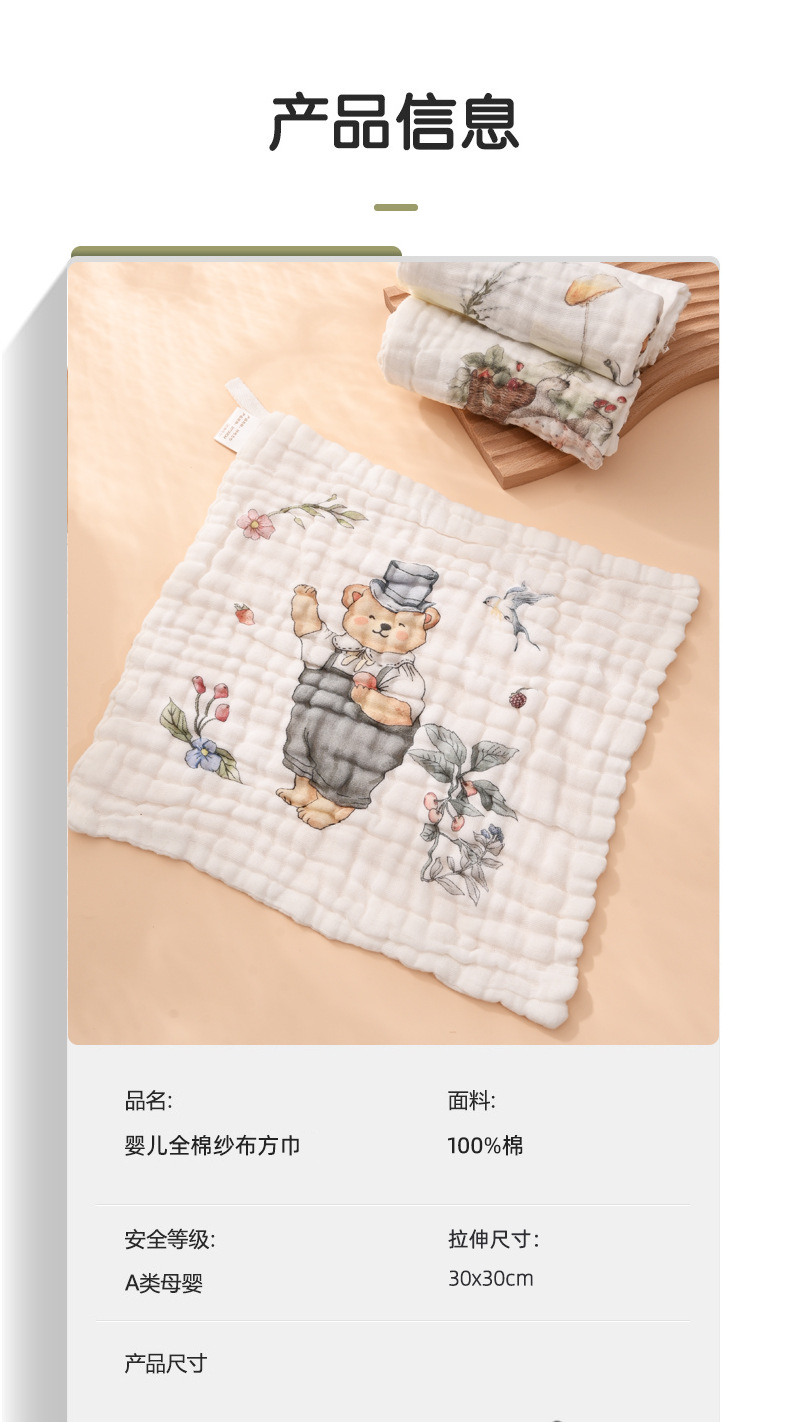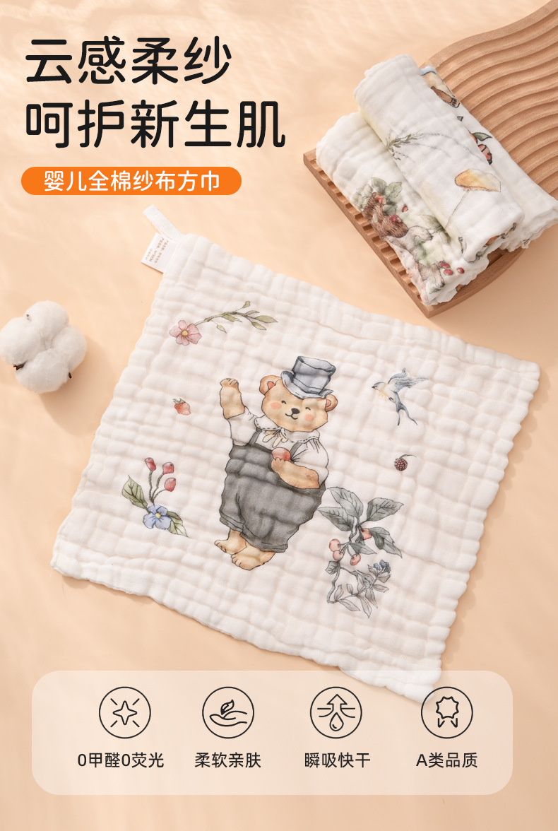 Антибактериальное хлопковое шестислойное марлевое квадратное полотенце класса A, детская серия, маленькое полотенце для новорожденных