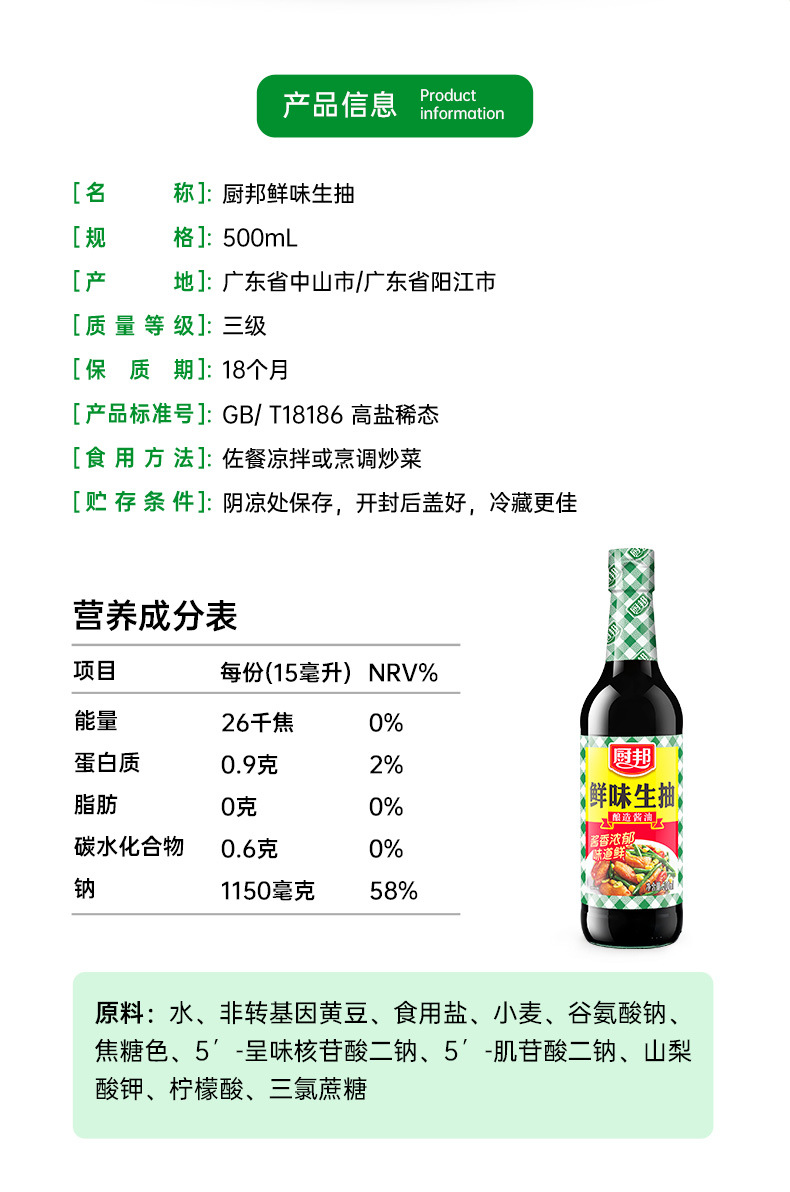 📦 | Chubang fresh soy sauce 500ml*1 bottle | ¥5.57 / ≈ 67 ₽ | 96643 | 5776680380782 | |