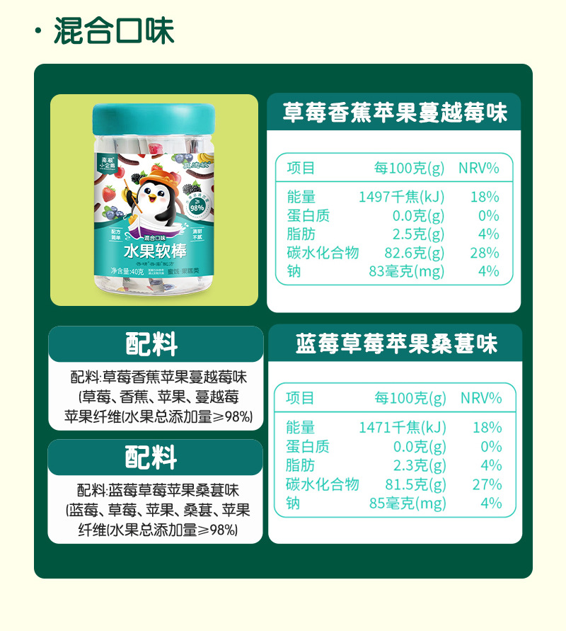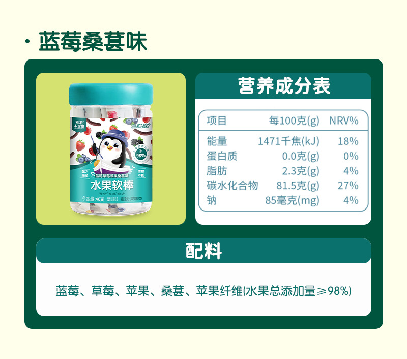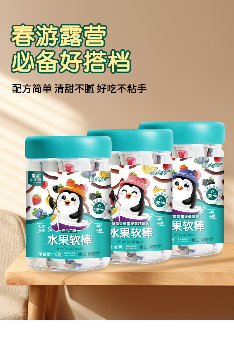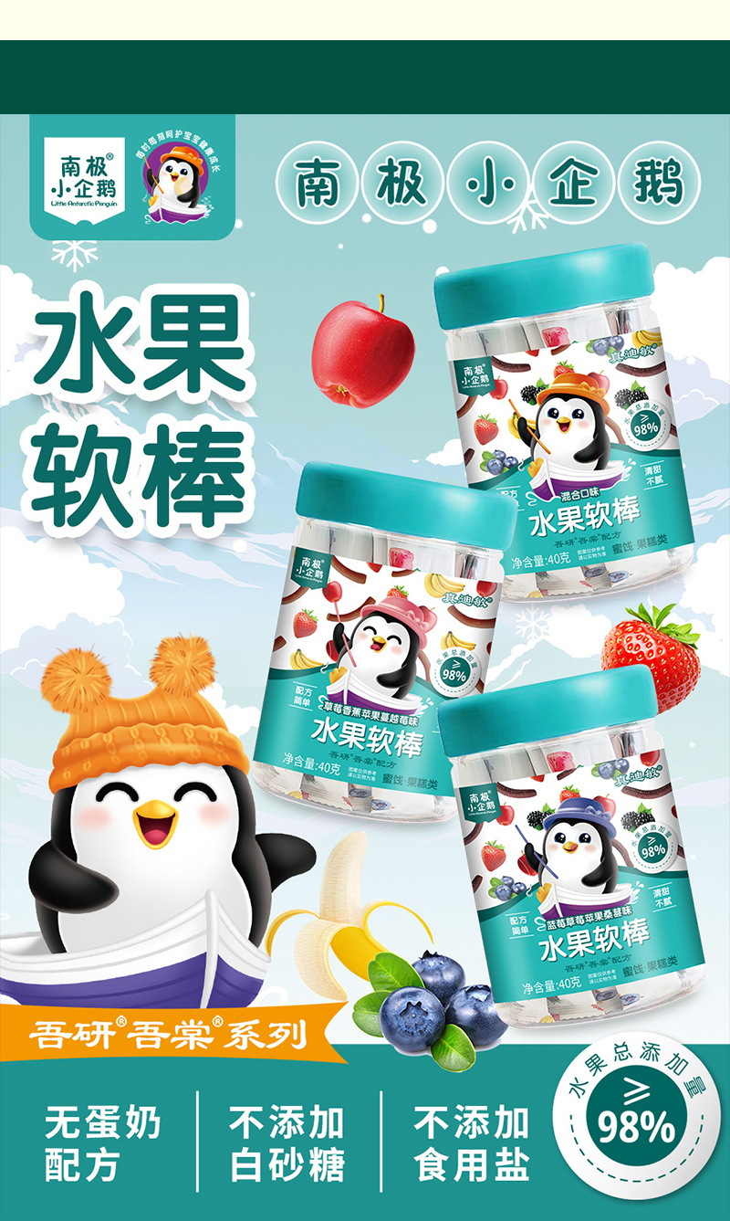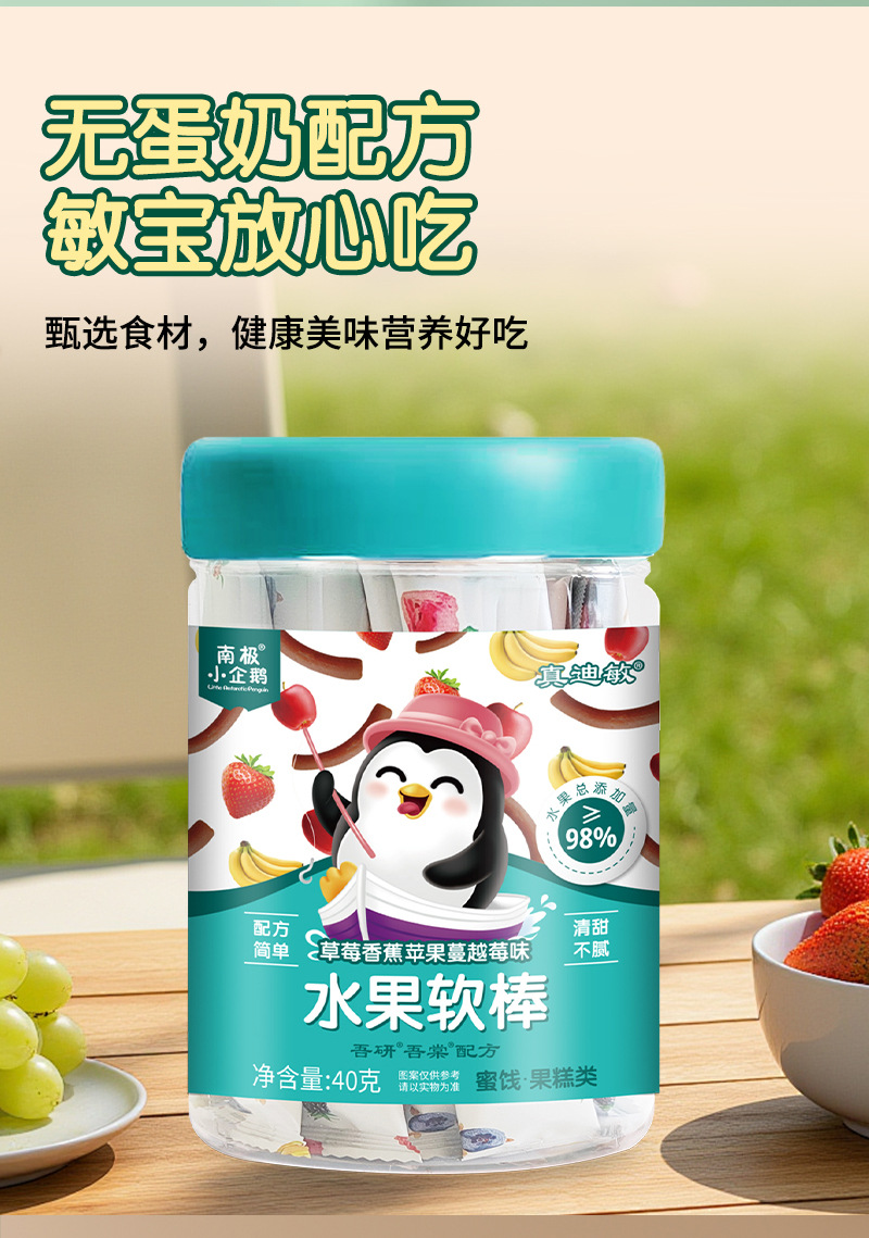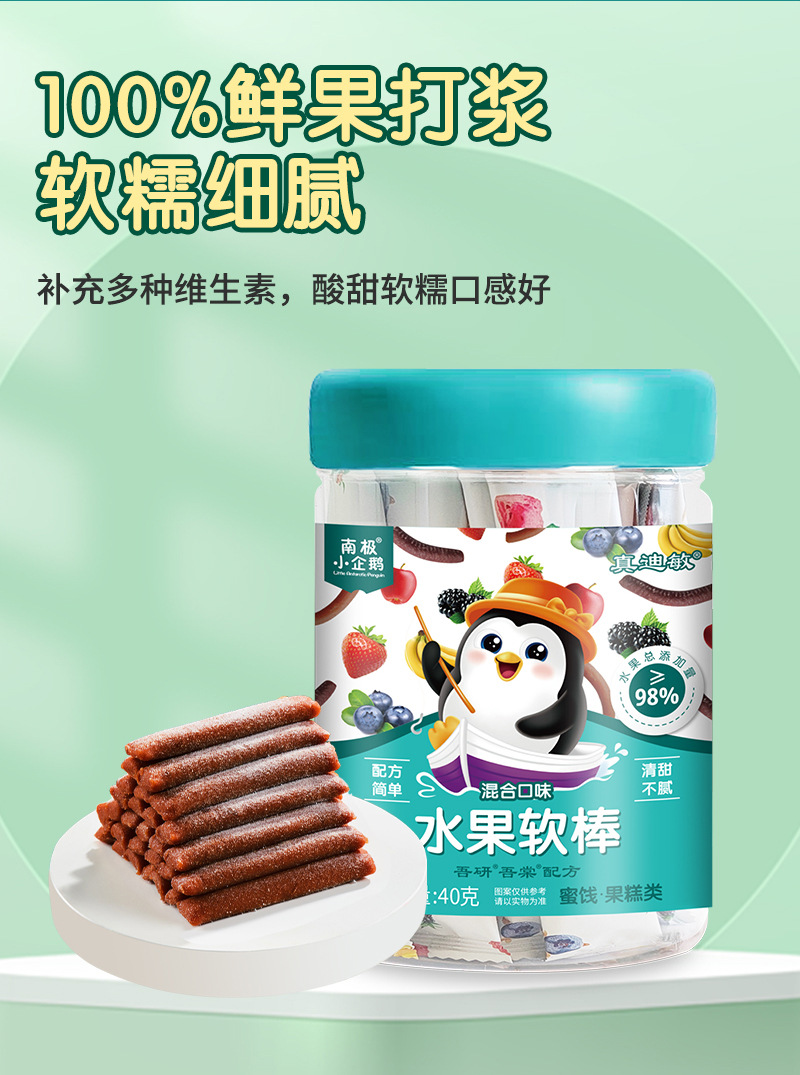 Мягкие фруктовые батончики с содержанием 98% от антарктического пингвина, 40Г/упаковка, сладкие и кислые детские закуски