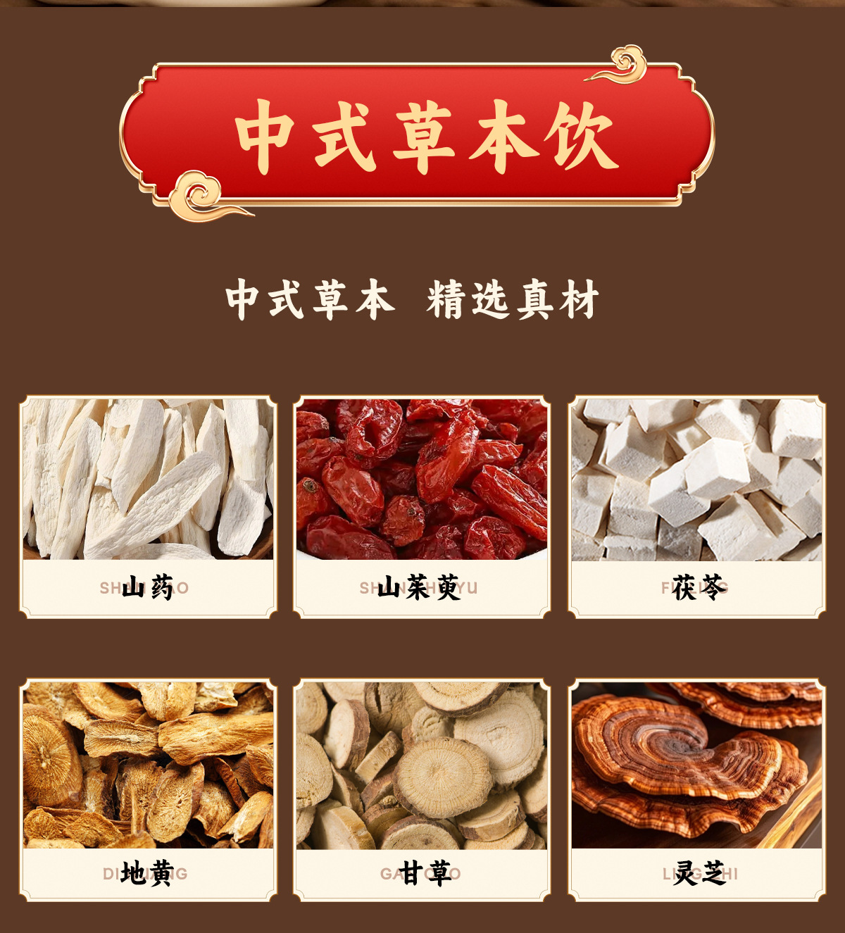 Основные сырьевые материалы Water, yellow rock sugar, brown sugar, yam, corus officinalis, poria cocos, earthy yellow, licorice, ganoderma lucidum