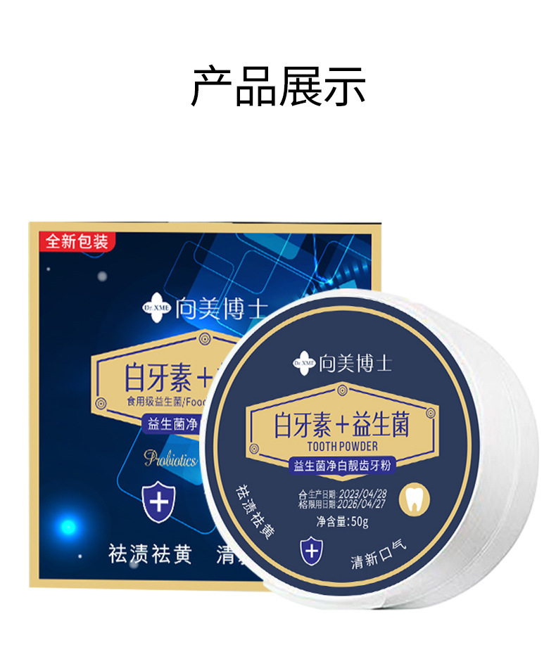 Зубной порошок Dr. Xiangmei с пробиотиками, очищает дыхание, удаляет пятна и зубной камень, заботится о зубах, освежает и отбеливает зубы
