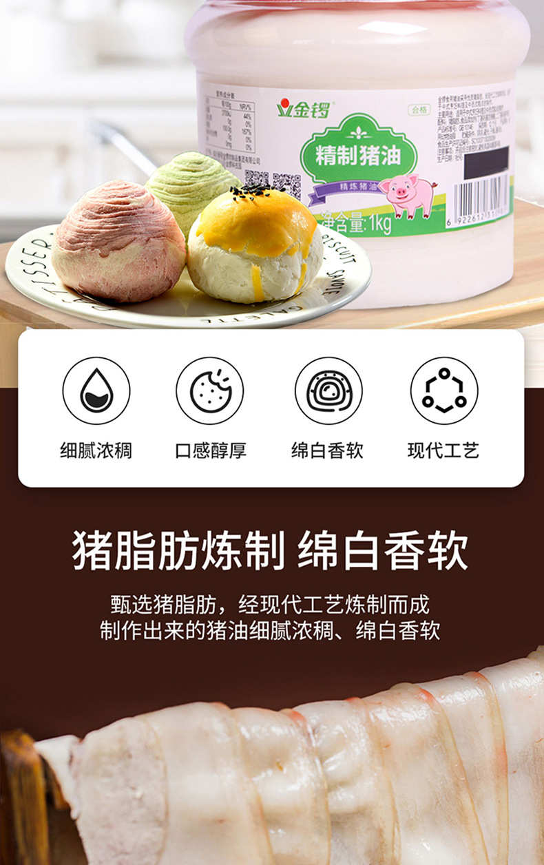 Съедобный свиной жир Цзиньлуо коммерческая выпечка хрустящее мясное масло очищенное белое масло для жарки