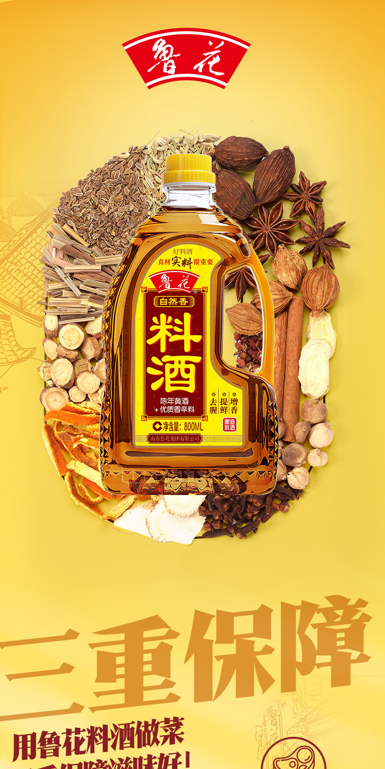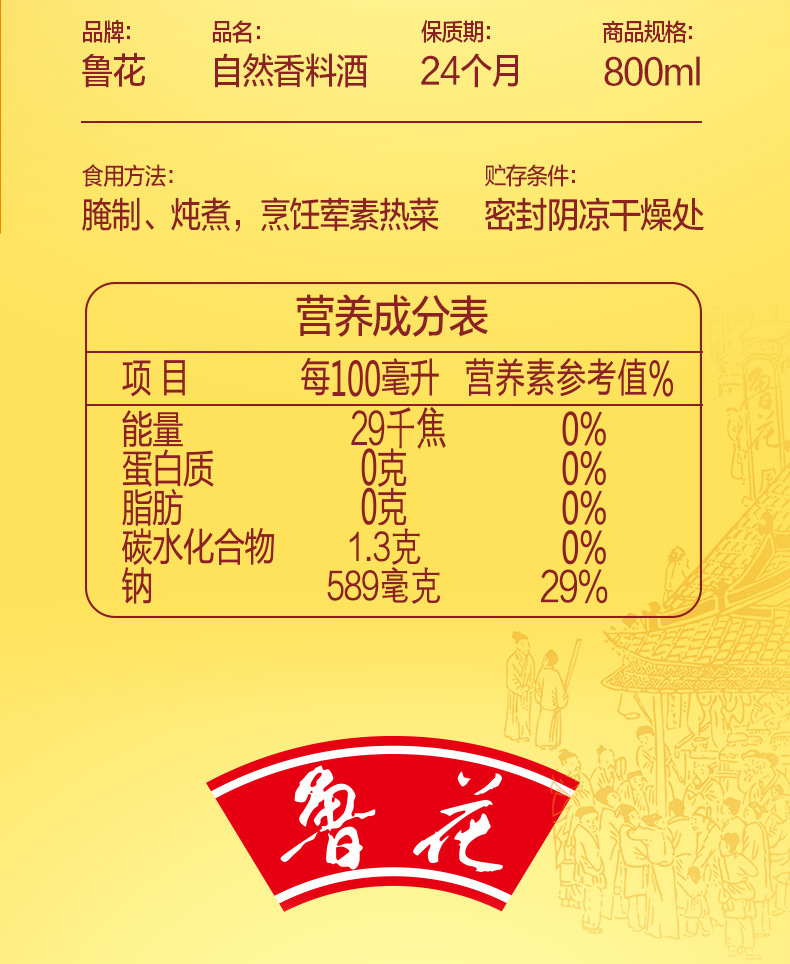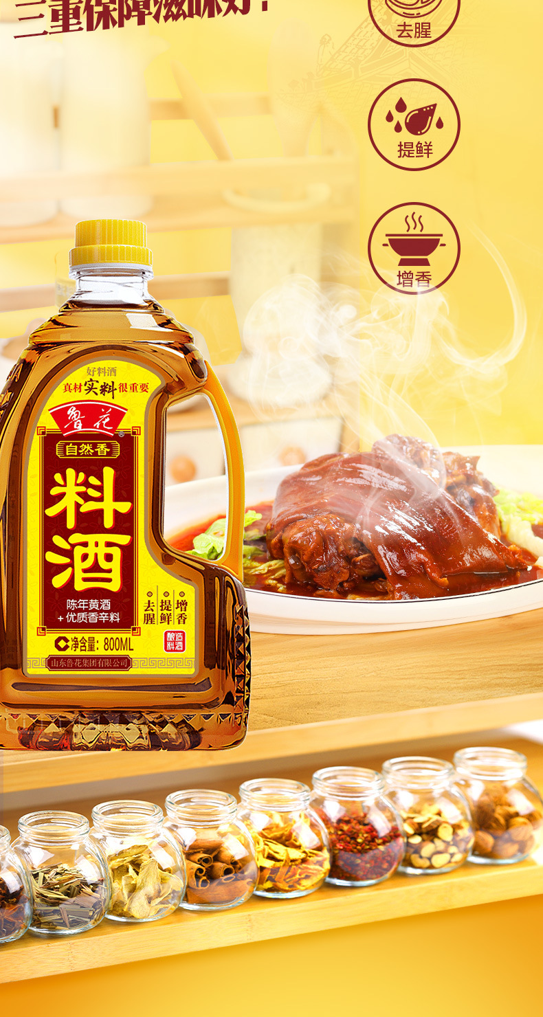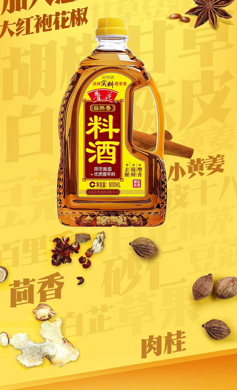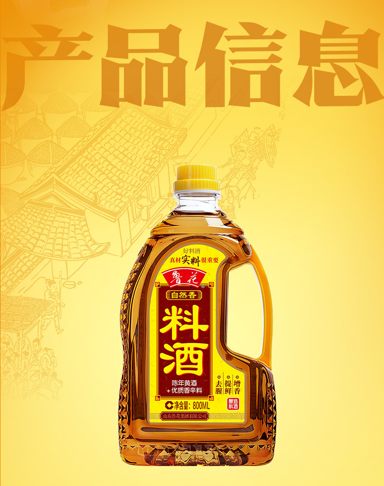 Естественное приправляющее вино Luhua 800мл для приготовления кухонное приправляющее желтое вино