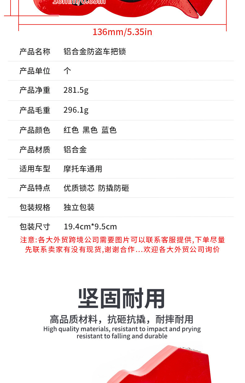 ![]() | (red cordless model) small alloy handlebar lock | ¥13.2 / ≈ 159 ₽ | 99673 | 5997978279561 | |