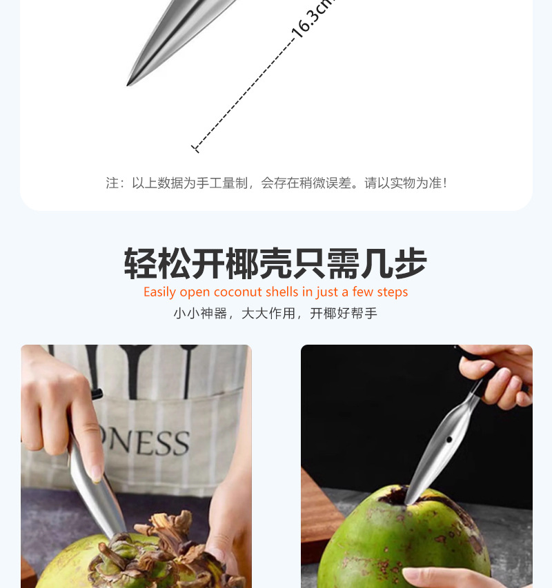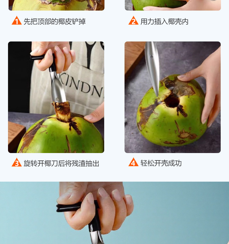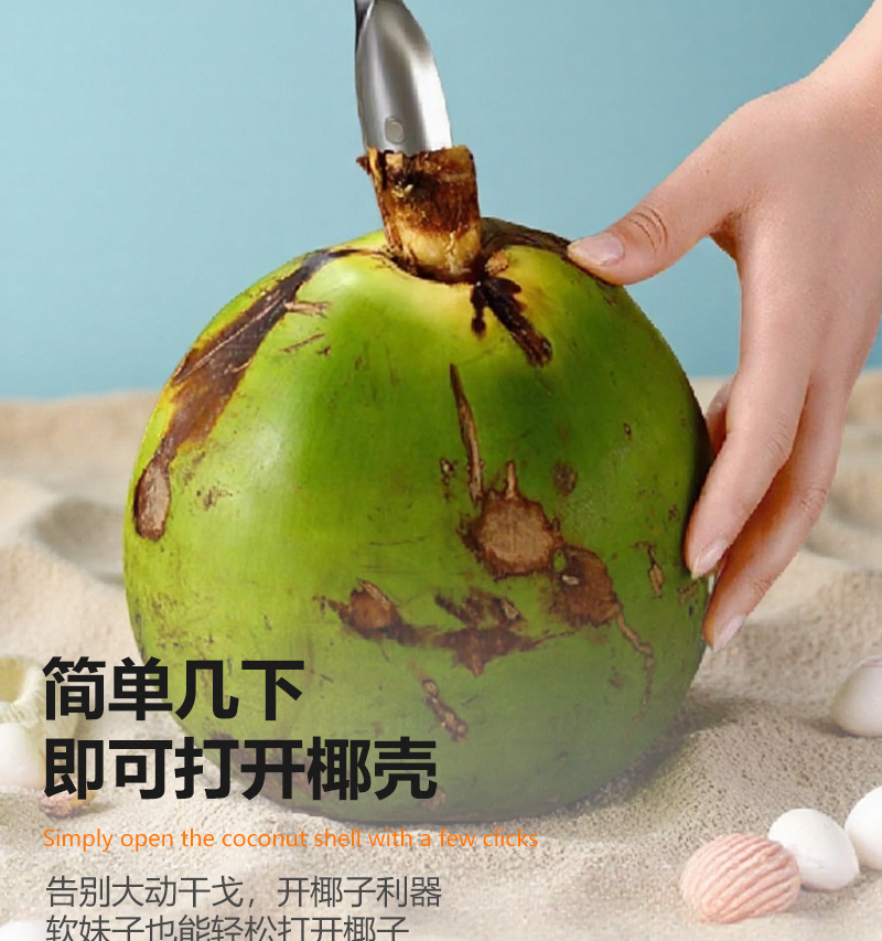 Новая открывалка для кокосов из нержавеющей стали, креативный инструмент для открытия кокосов
